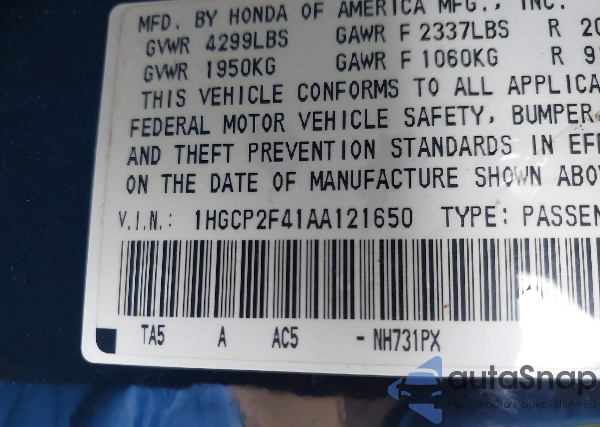 LOT: 42247346 VIN: JN1EV7AR2GM342228