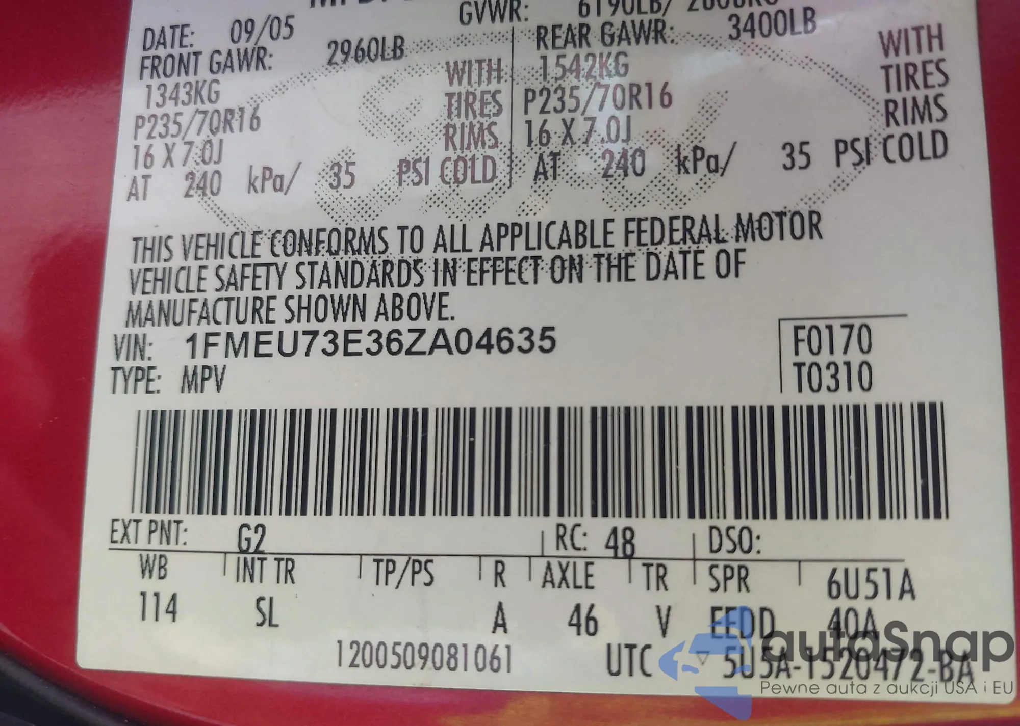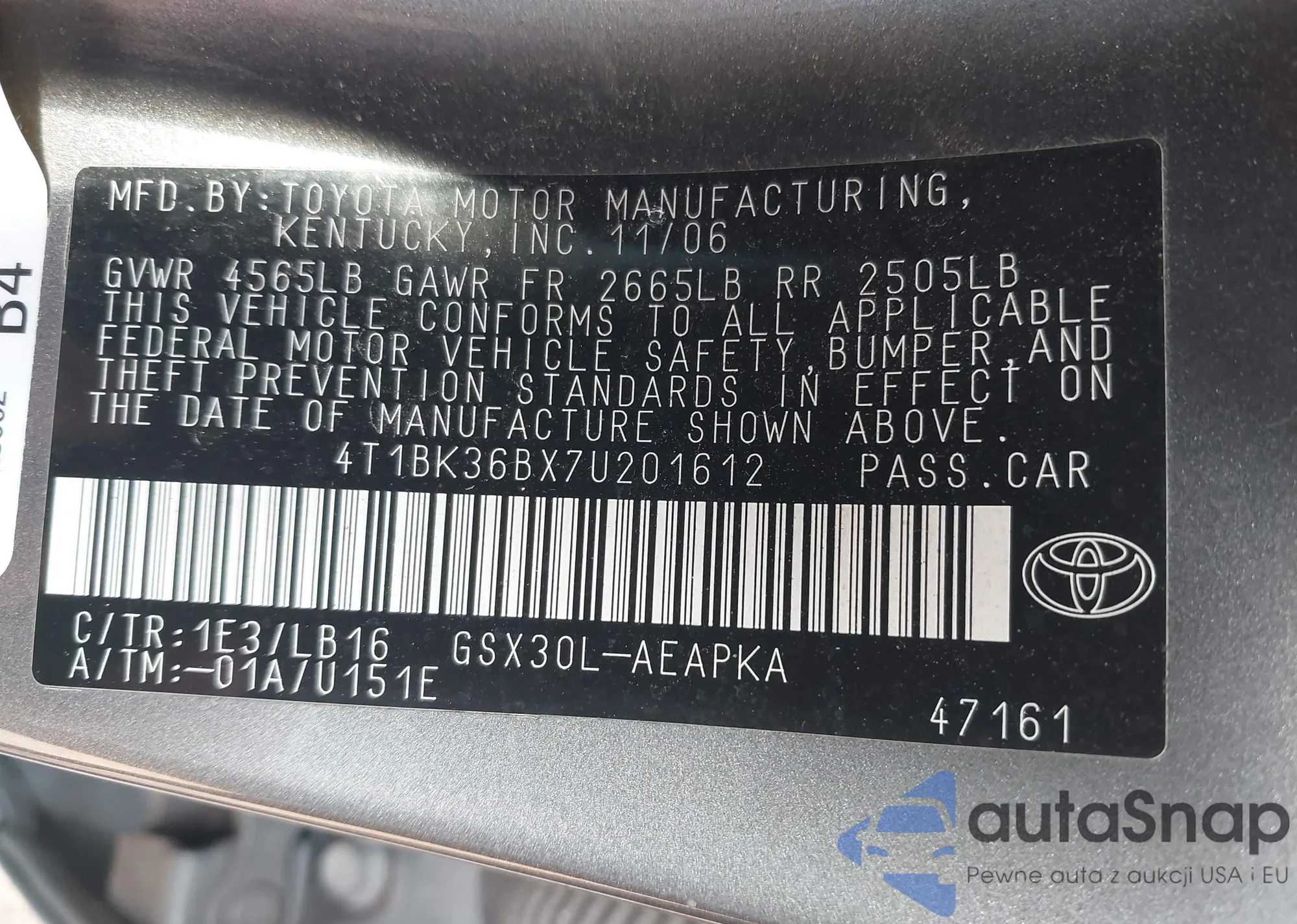 LOT: 42306919 VIN: 4T1BK36BX7U201612