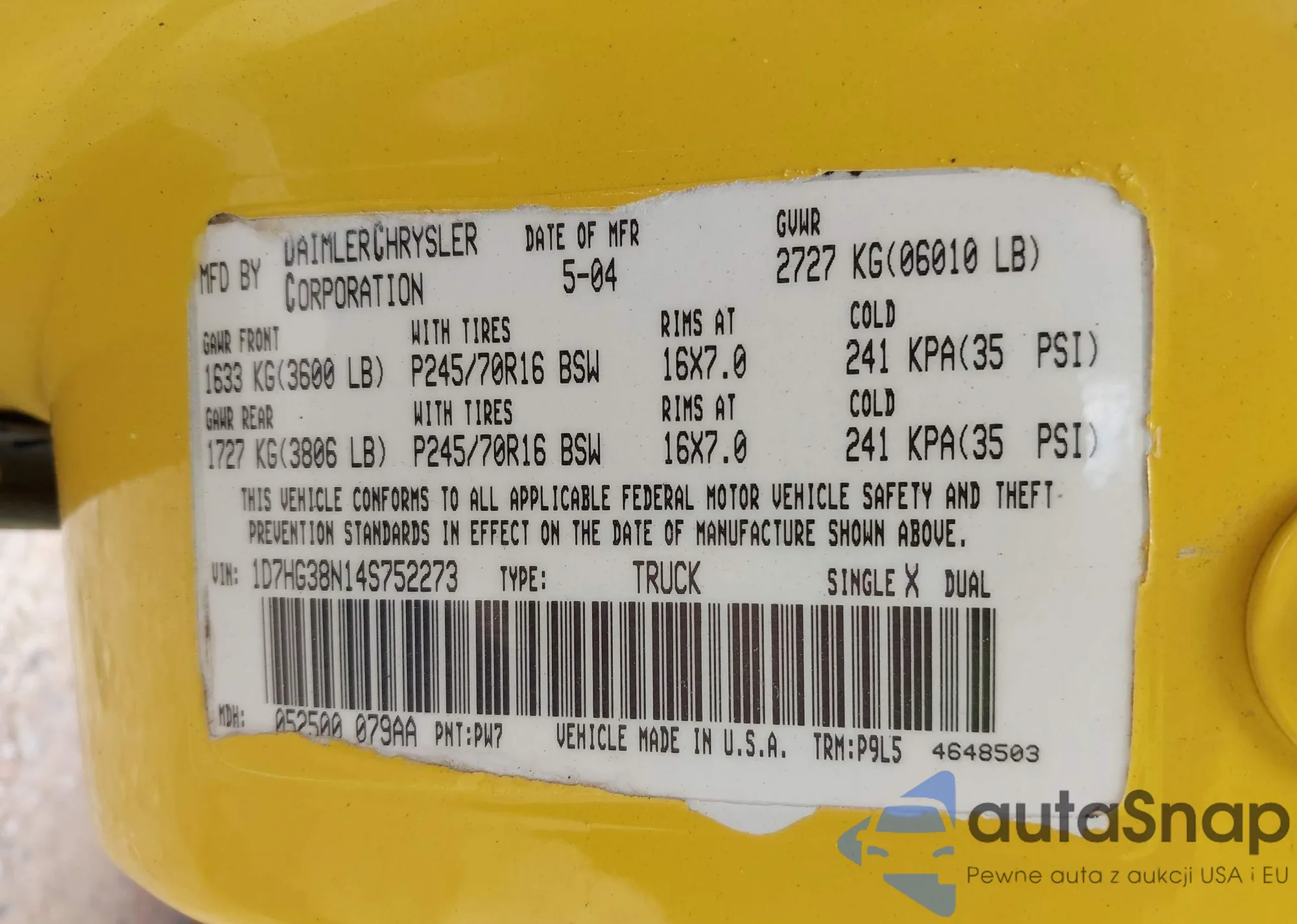 • VIN 1D8HB48PX7F583353