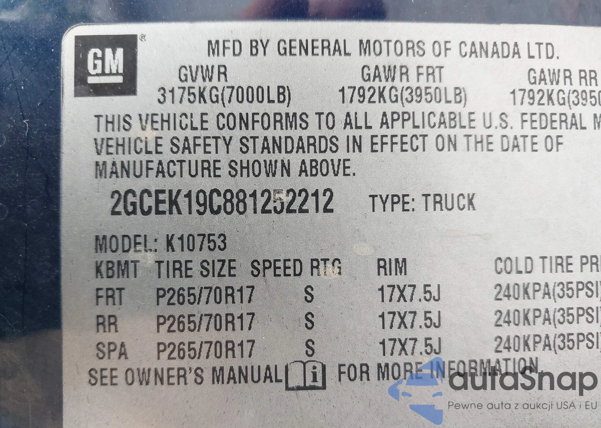 • VIN 2GCEK19C881252212