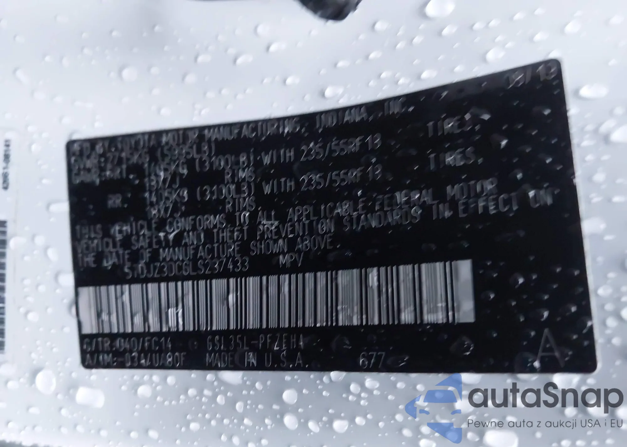 LOT: 42340068 VIN: KNDPBCA26D7447309