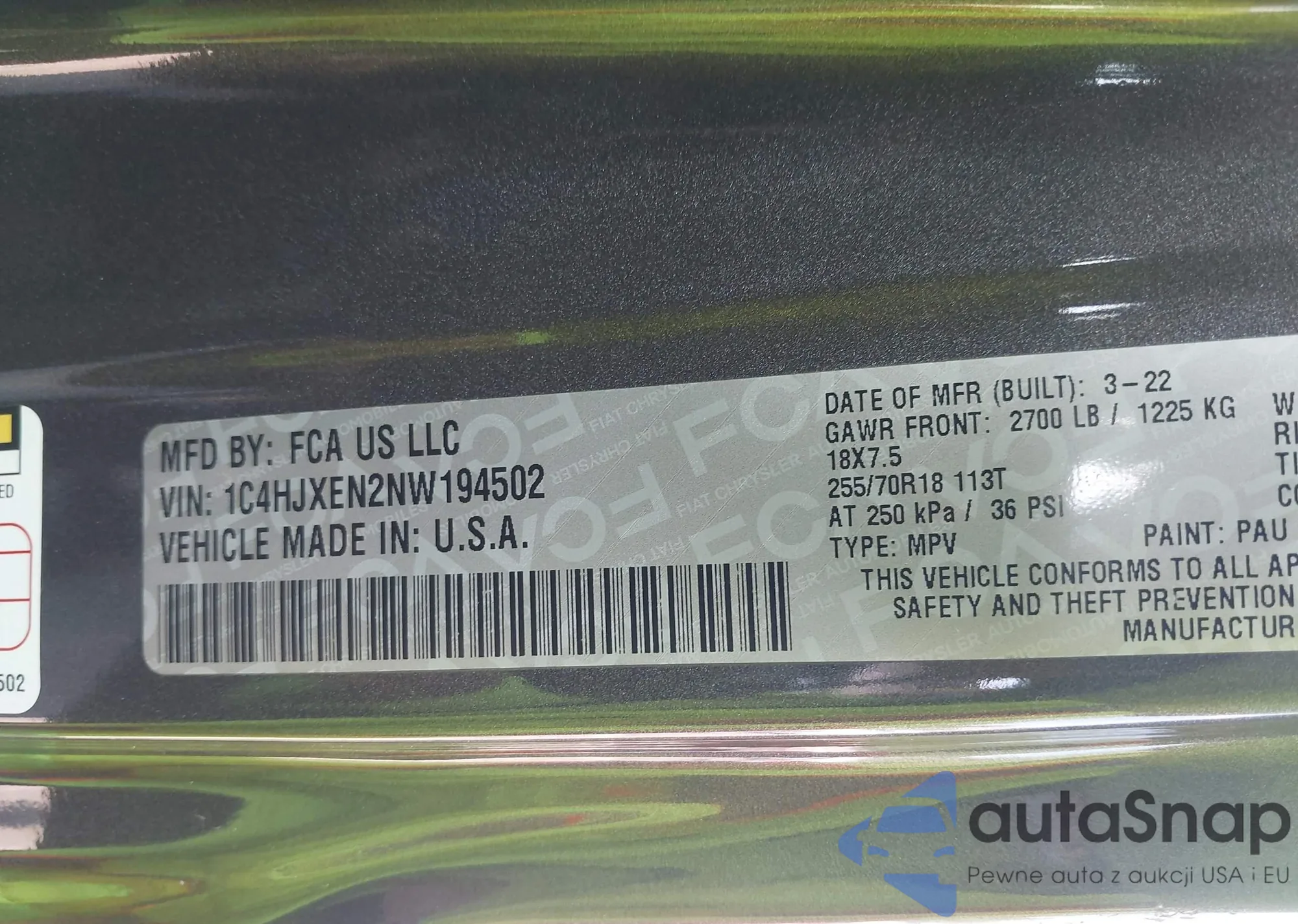 • VIN 1C4HJXEN2NW194502