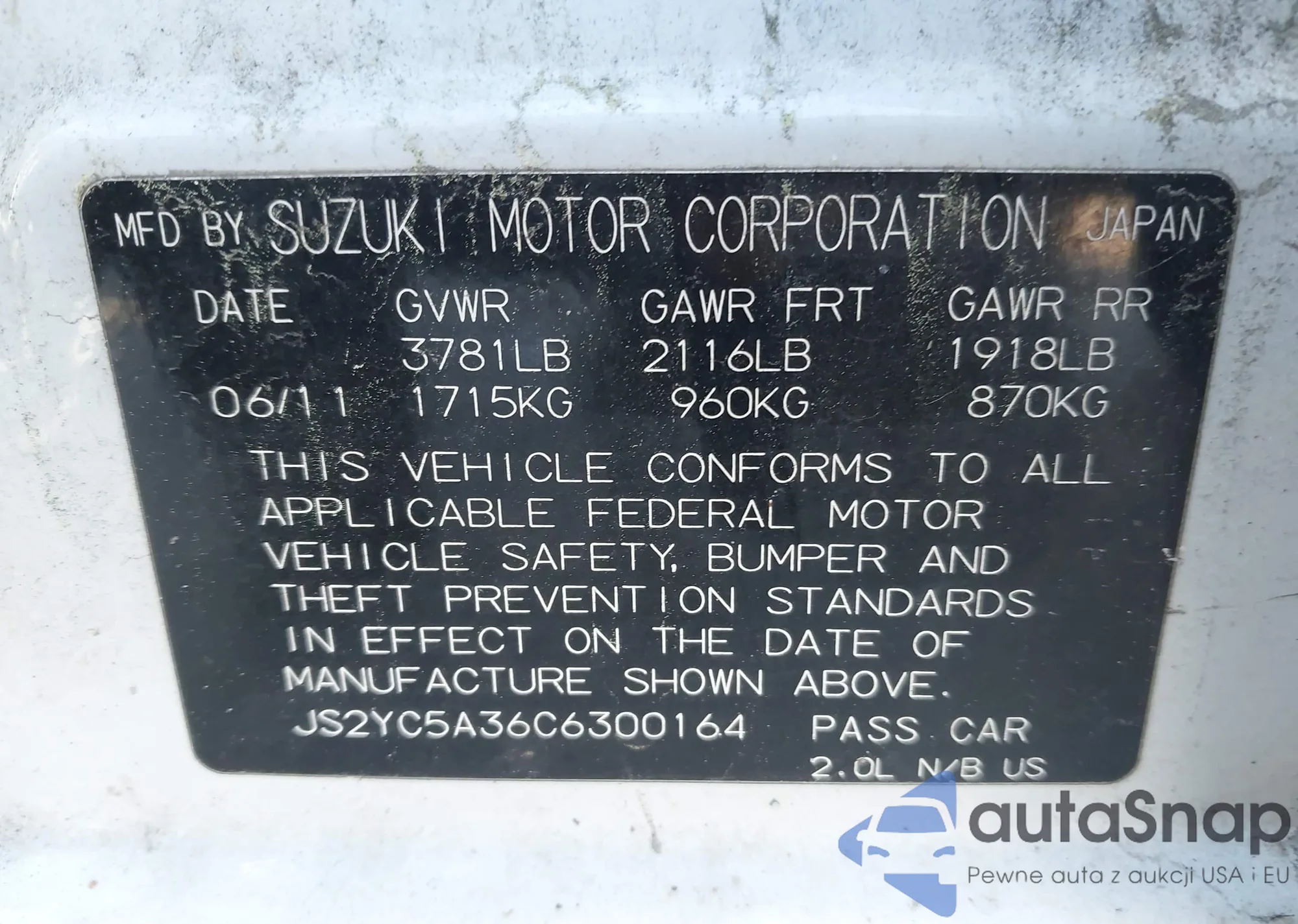 • VIN JS2YC5A36C6300164