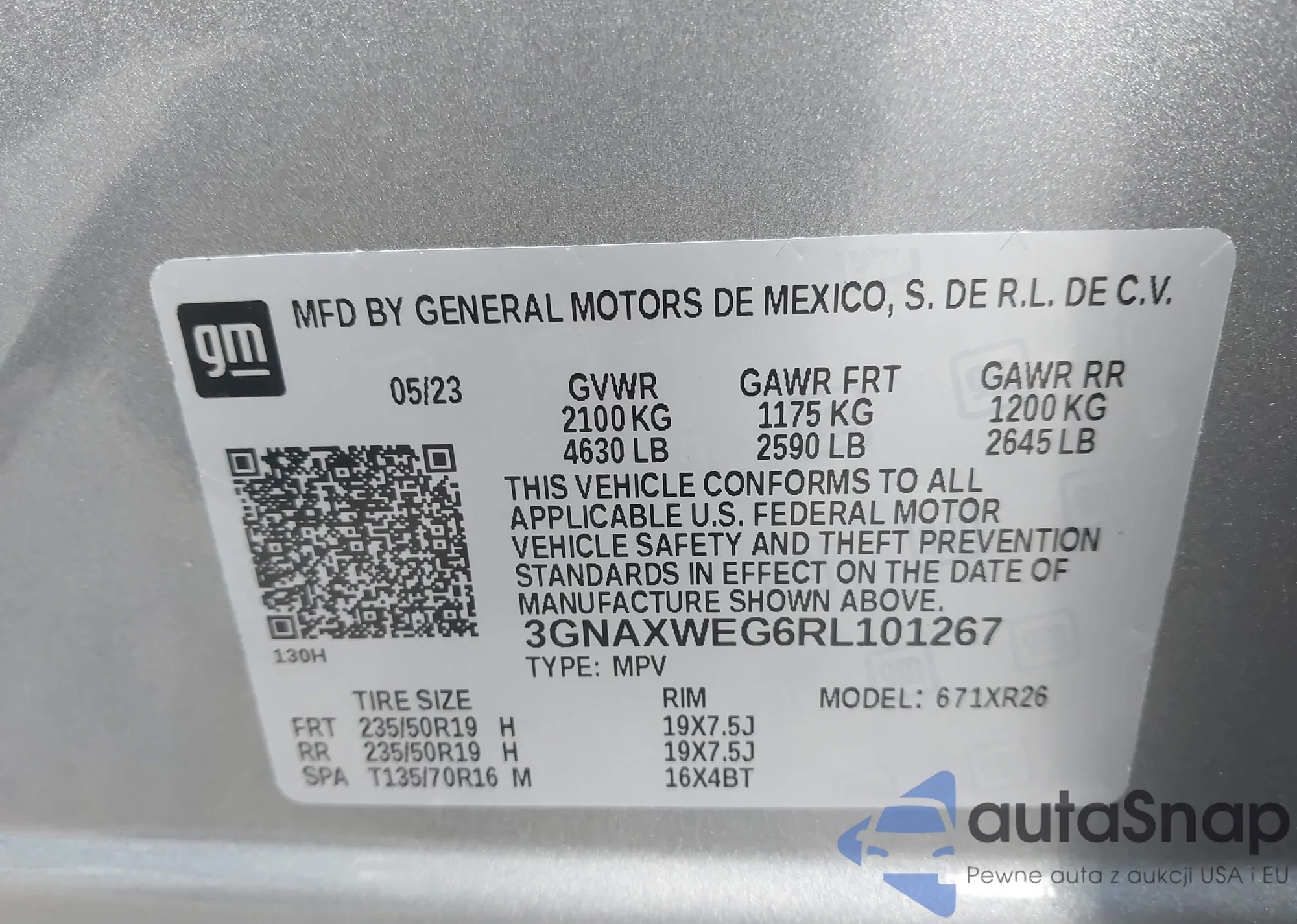 • VIN 3GNAXWEG6RL101267