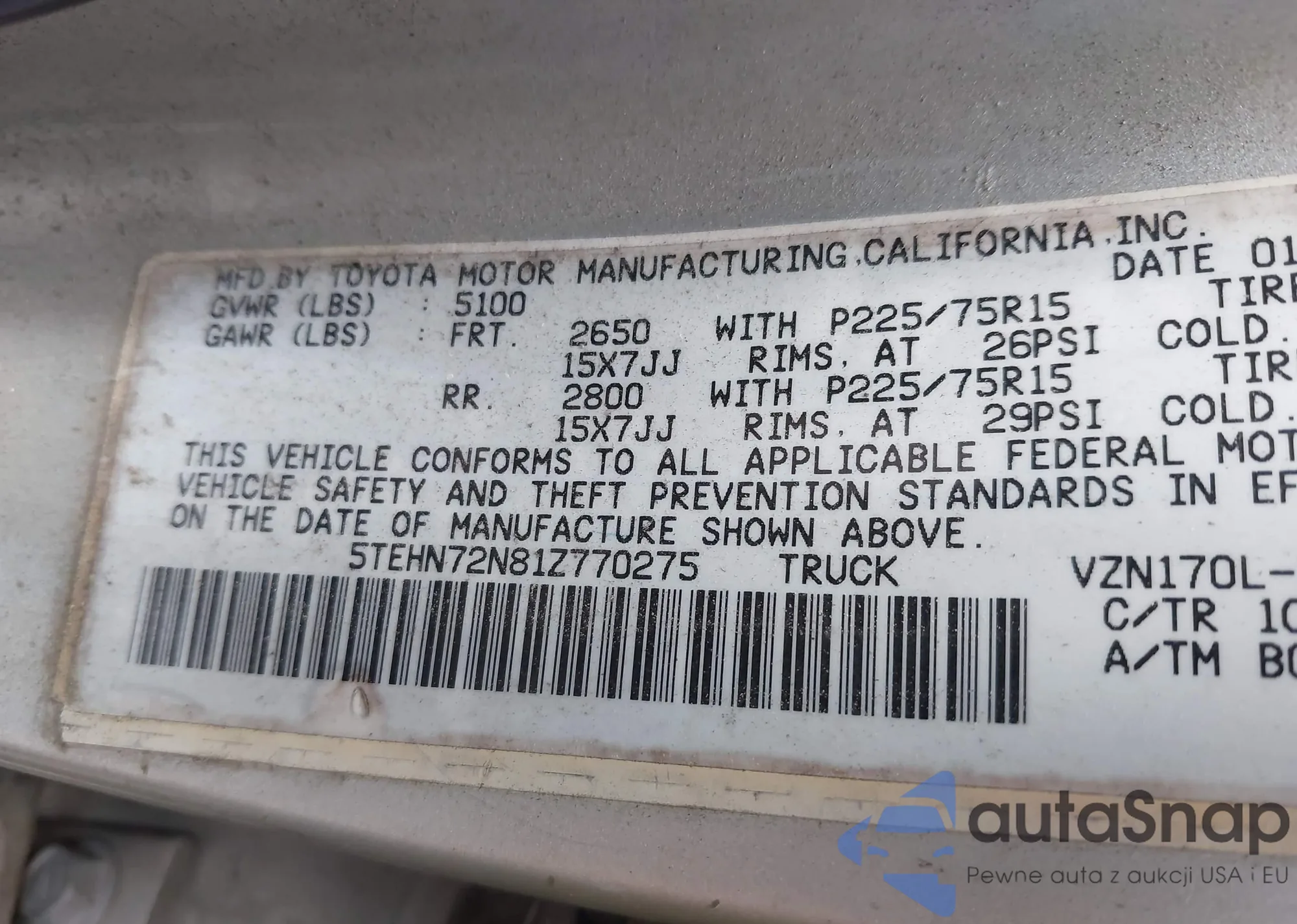 • VIN 1N4AL2APXCC127687