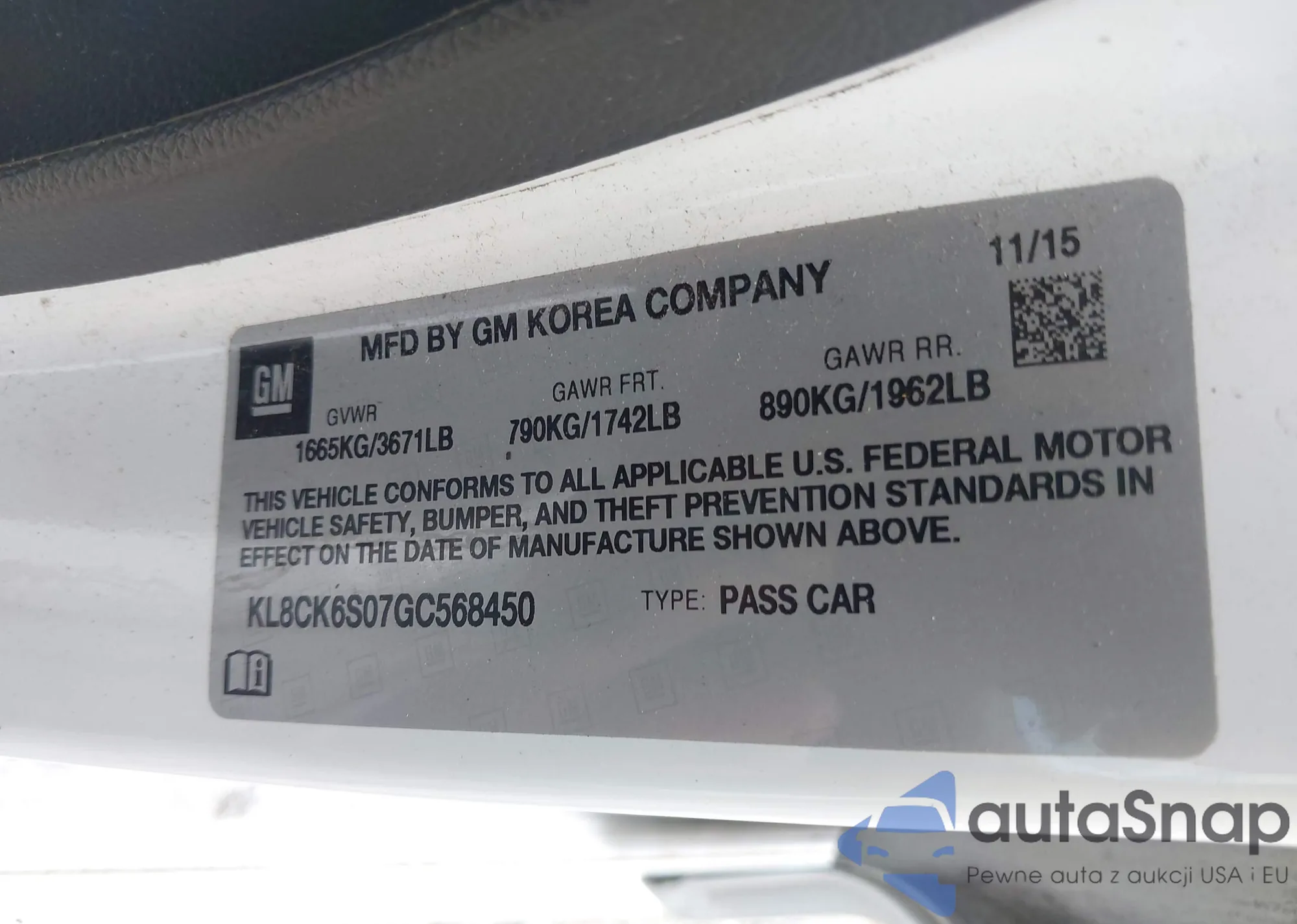 • VIN KL8CK6S07GC568450