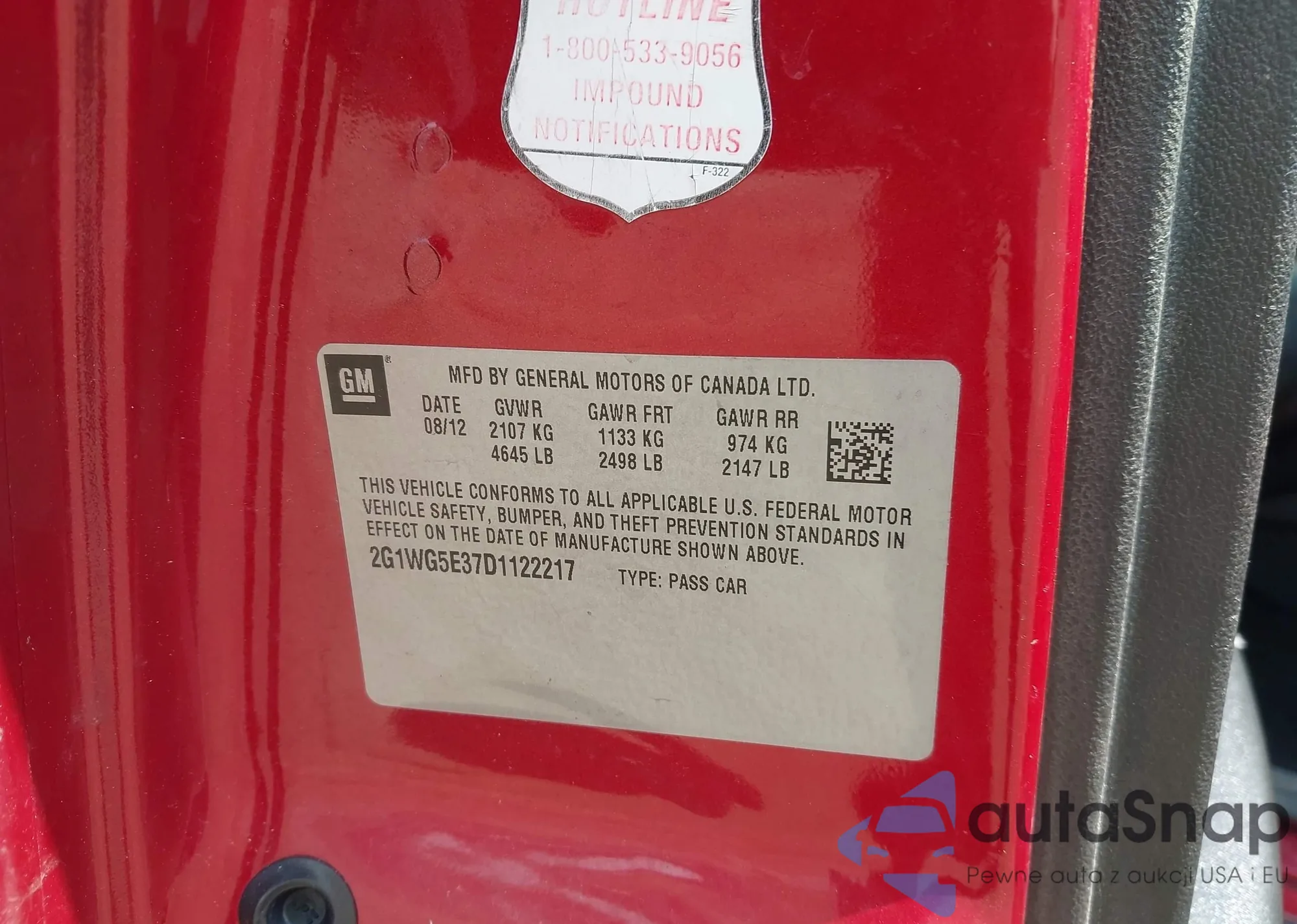 • VIN 2G1WG5E37D1122217