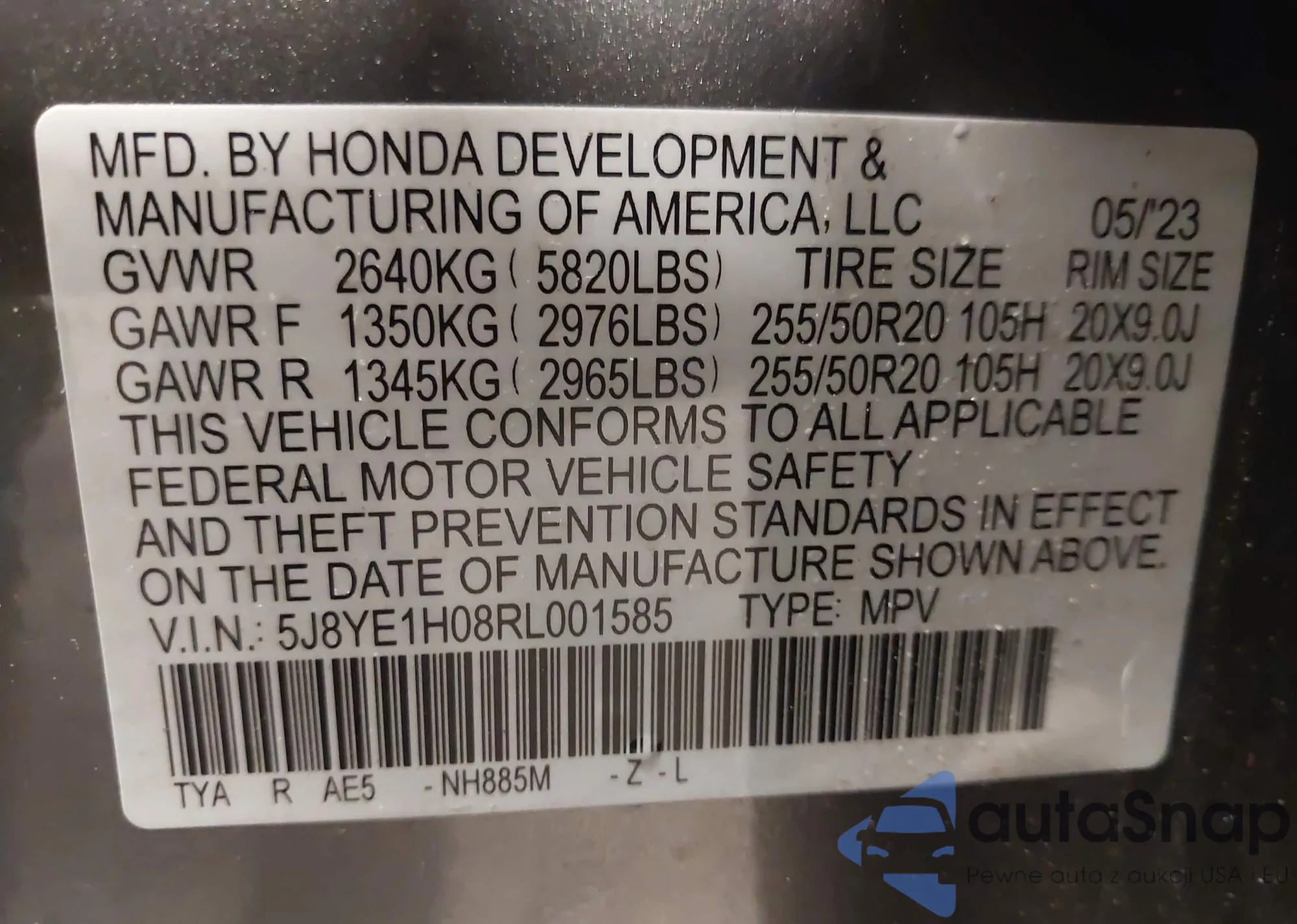 • VIN 5XYKWDA23BG094760