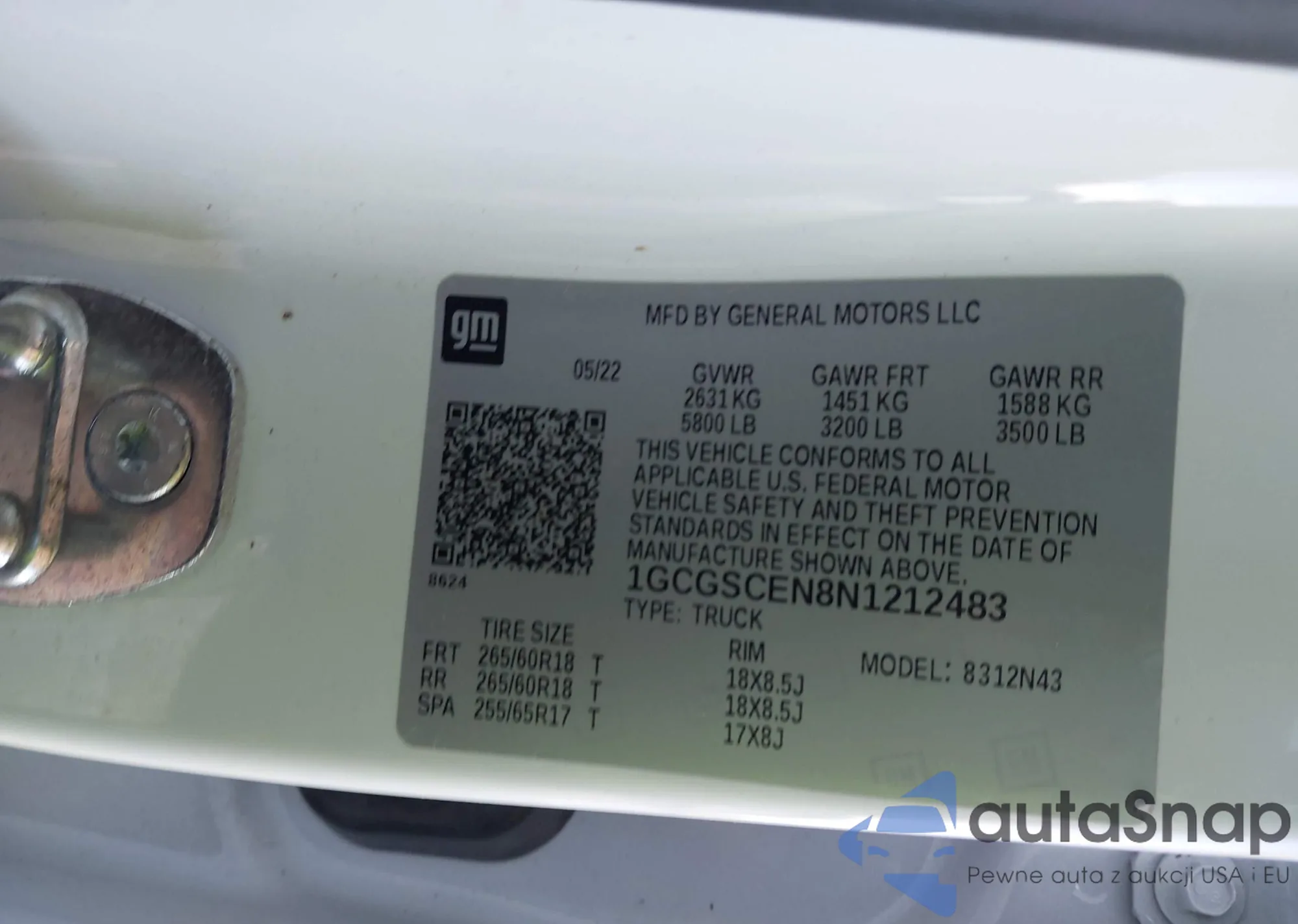 LOT: 42233607 VIN: 1GCGSCEN8N1212483