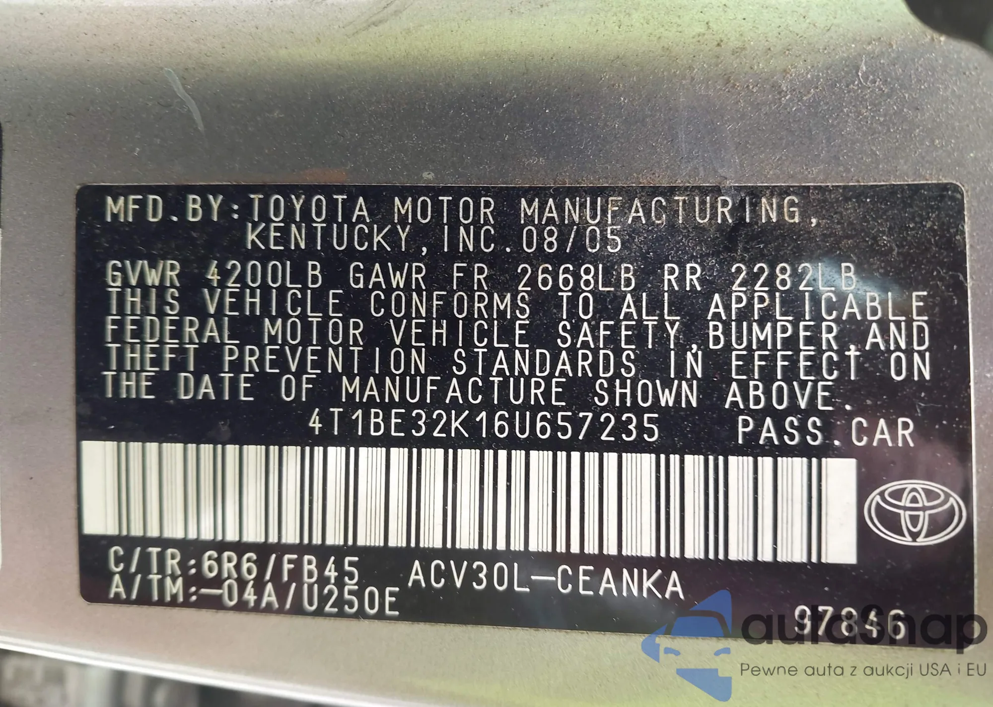 • VIN 4T1BE32K16U657235