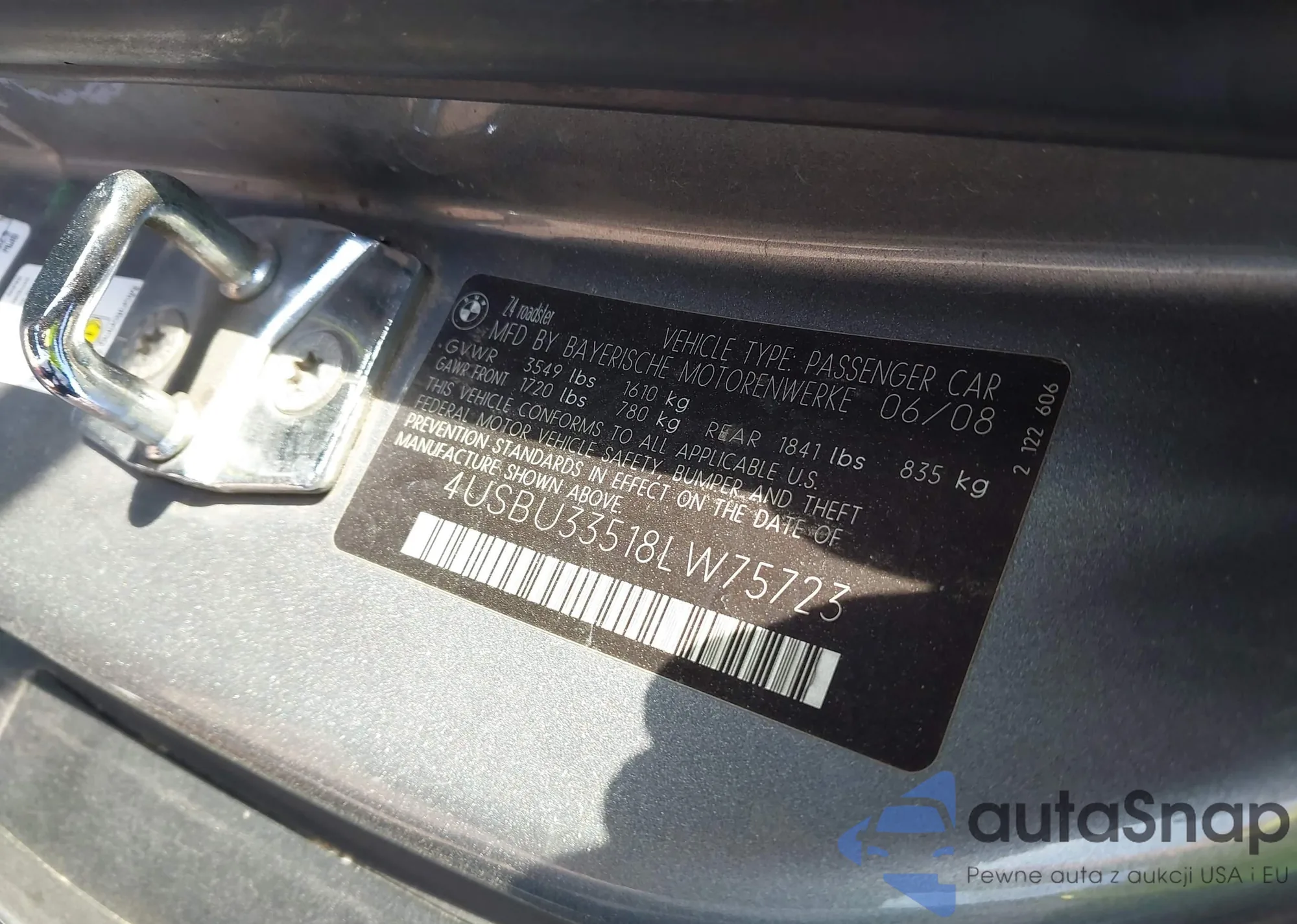 2008 BMW Z4 3.0I z USA, uszkodzony, nr VIN 4USBU33518LW75723