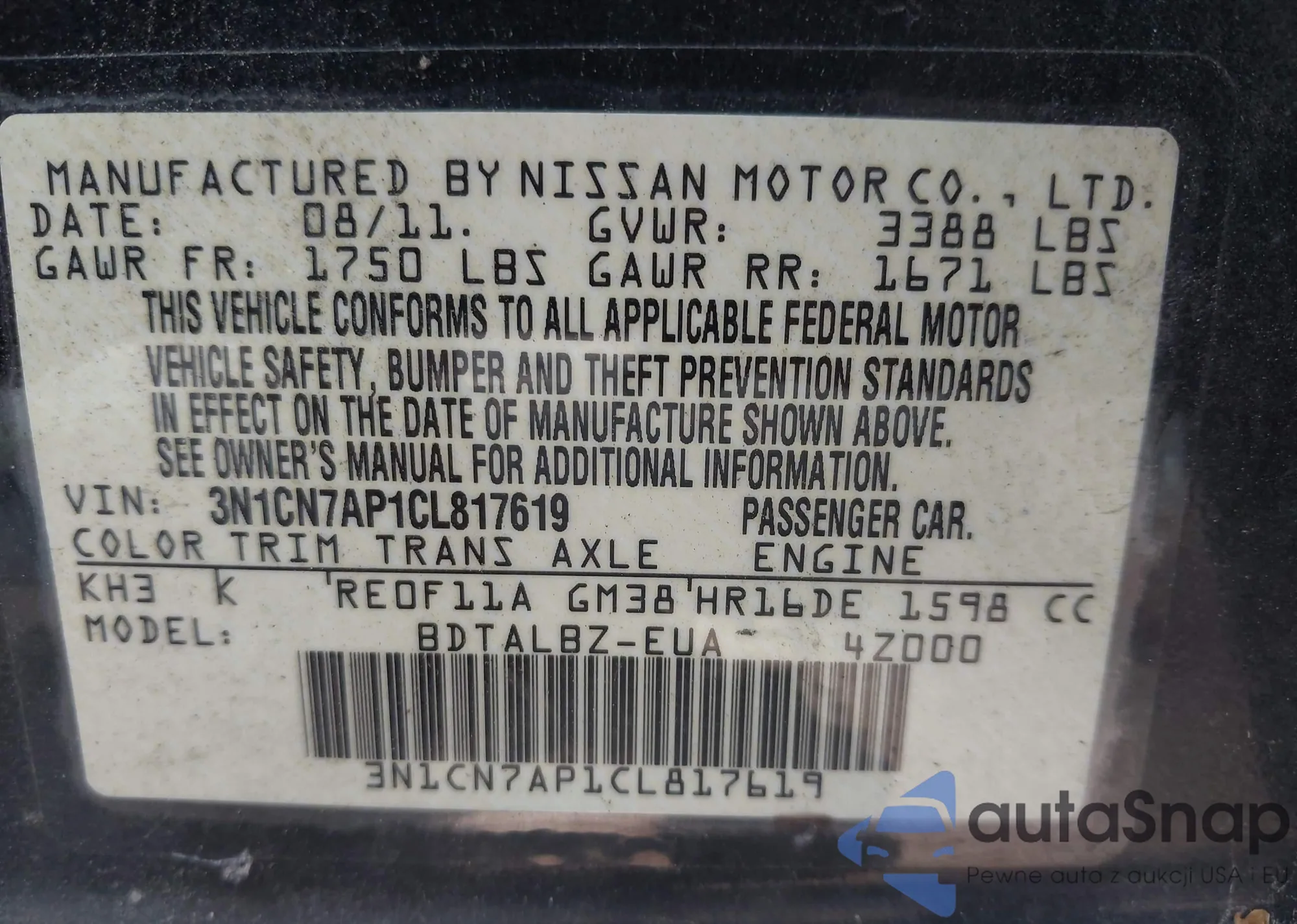 • VIN 3N1CN7AP1CL817619