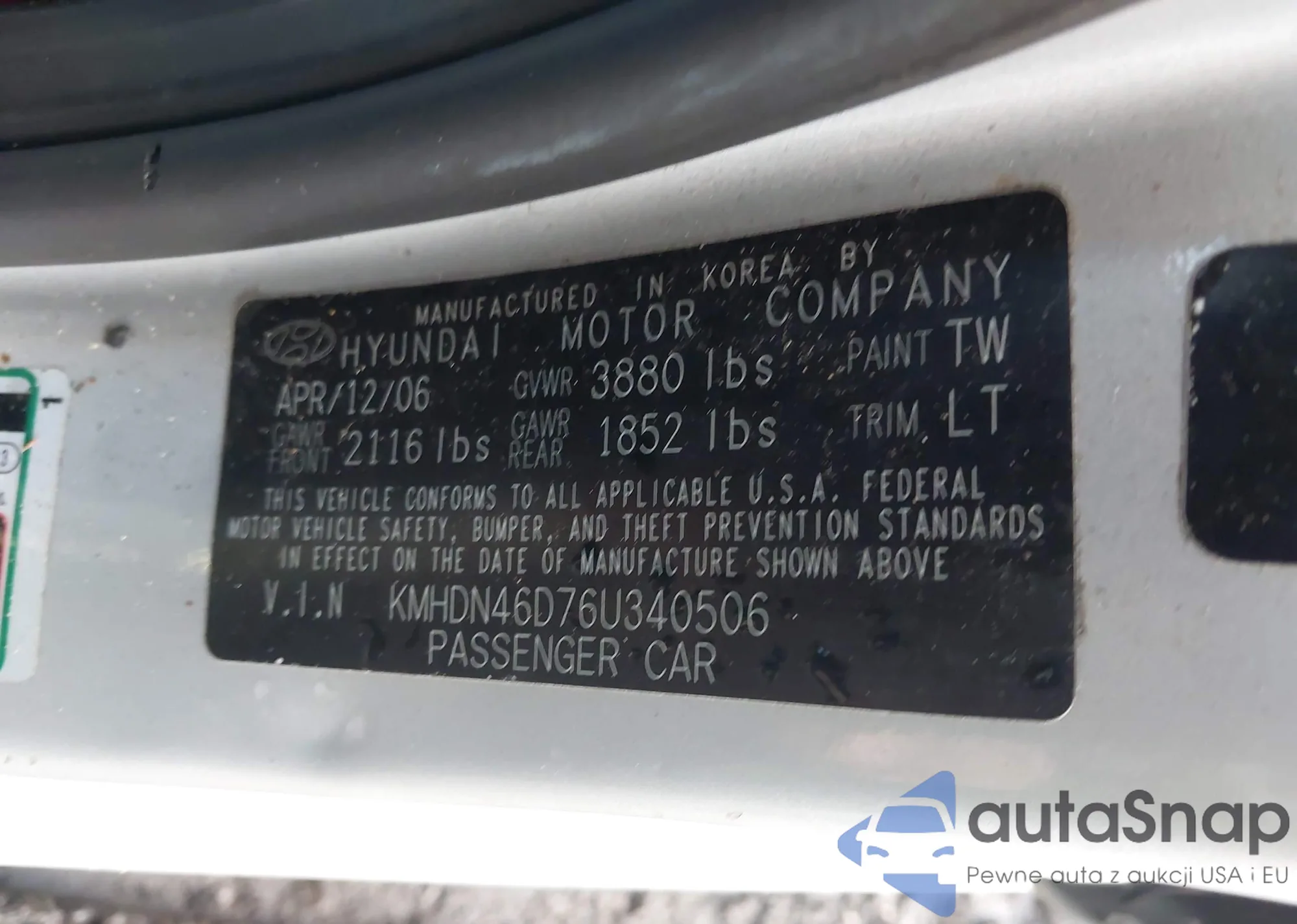 LOT: 41040215 VIN: KMHDN46D76U340506