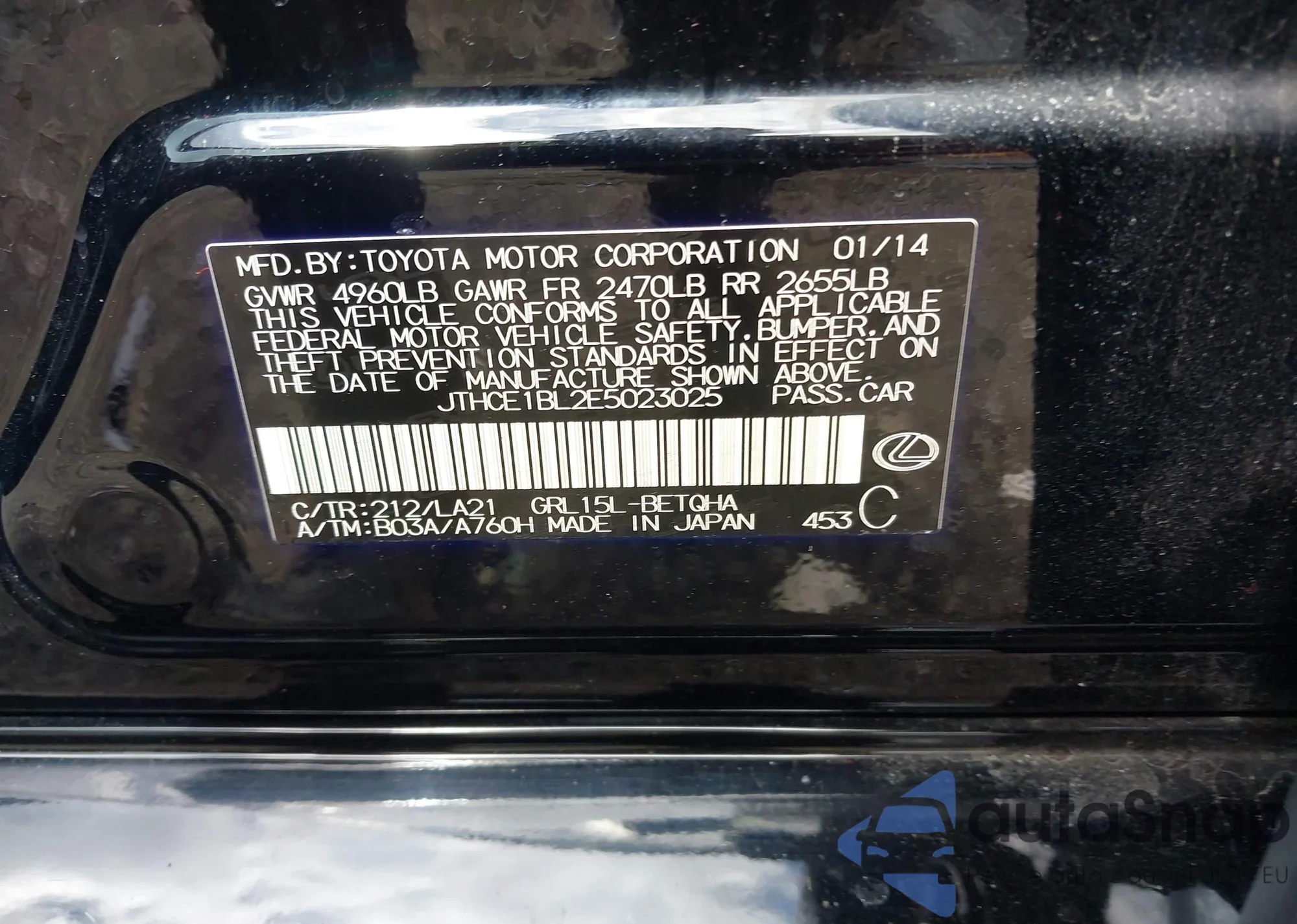LOT: 42068473 VIN: JTHAP1D22P5002345