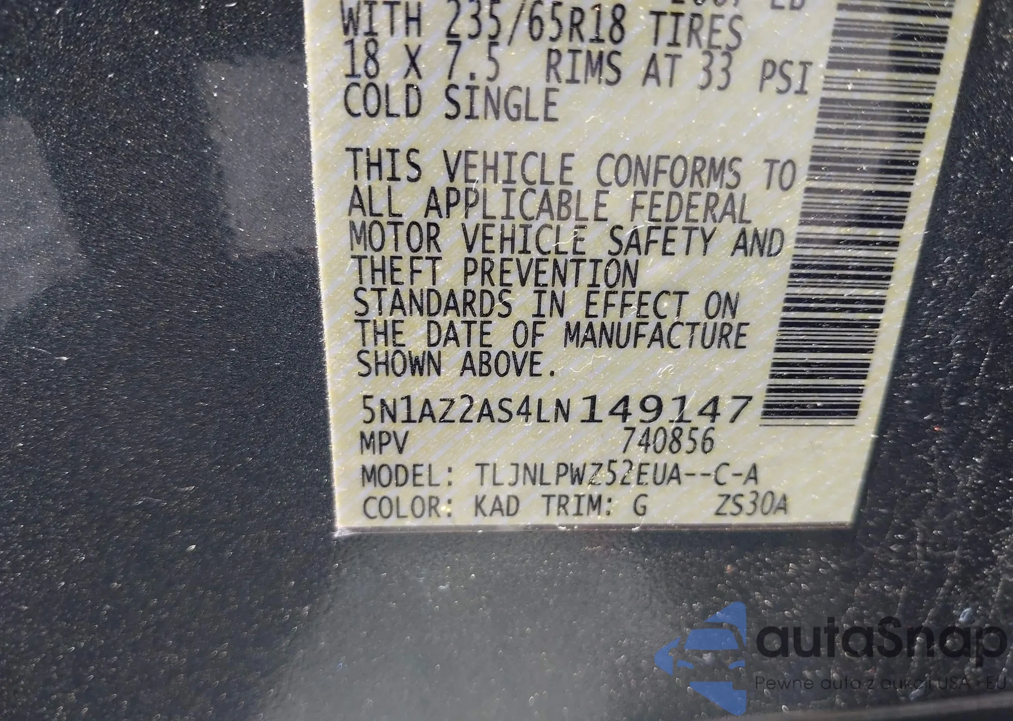 • VIN 5N1AZ2AS4LN149147