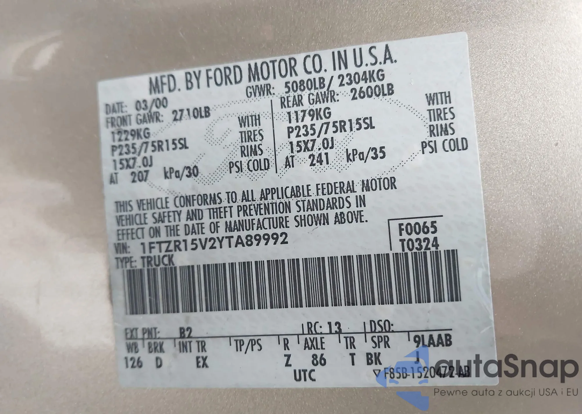 • VIN JTHAP1D22P5002345