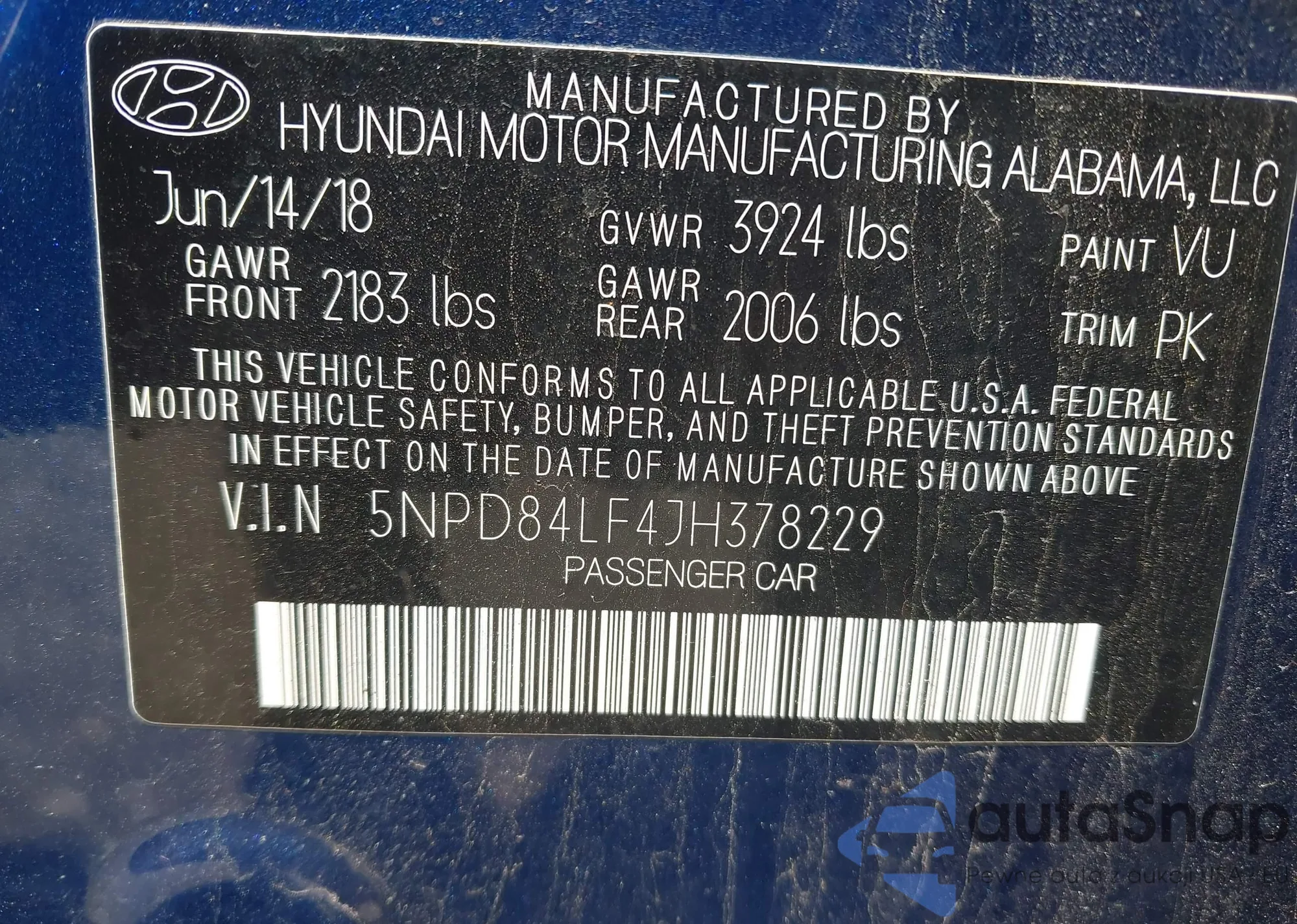 • VIN 5NPD84LF4JH378229