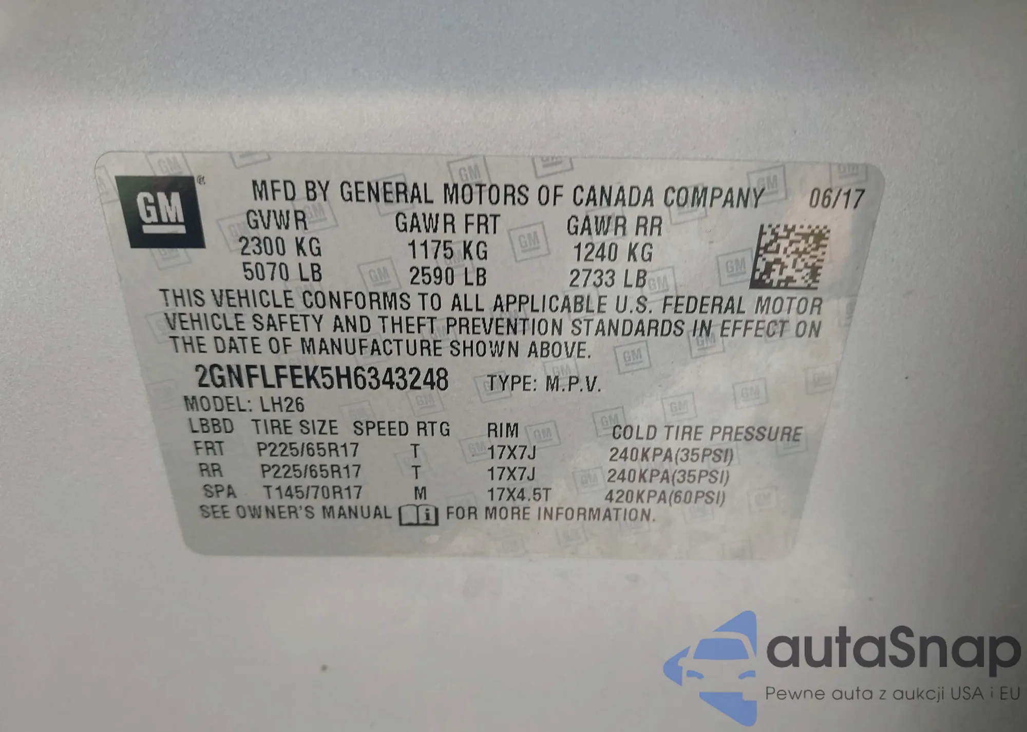 LOT: 42353163 VIN: 2GNFLGEK0F6253265