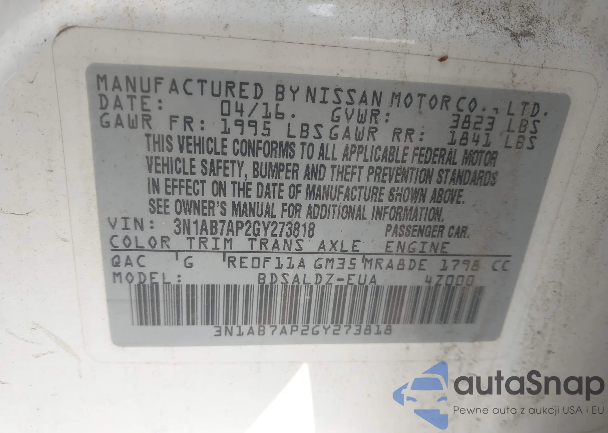 • VIN 3N1AB7AP2GY273818