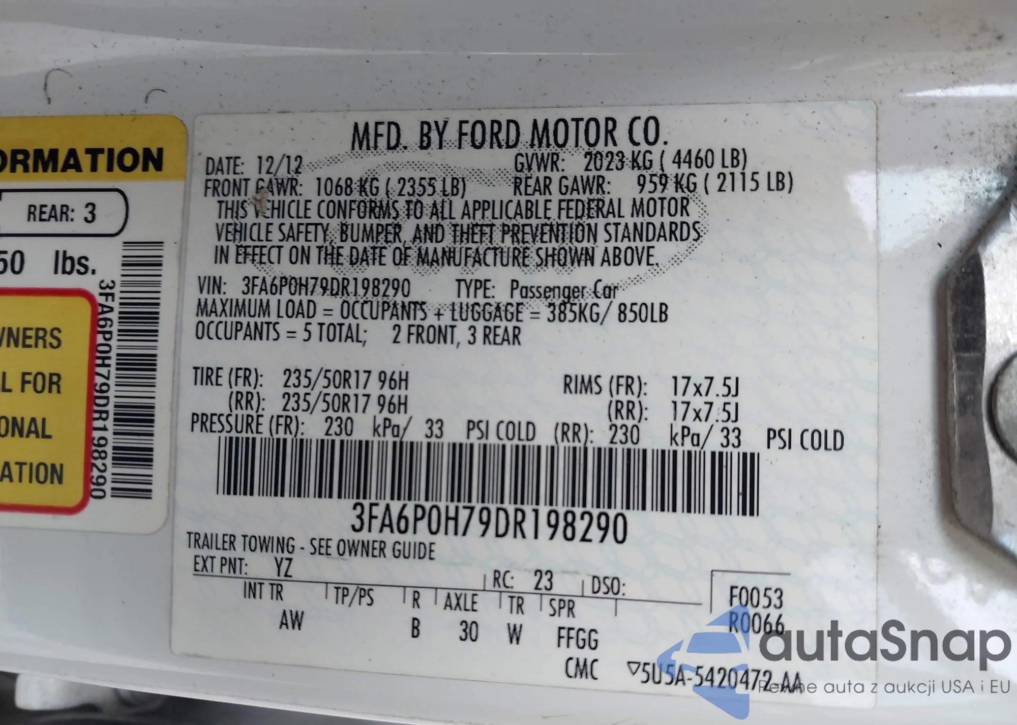 LOT: 42483660 VIN: 3FA6P0H79DR198290