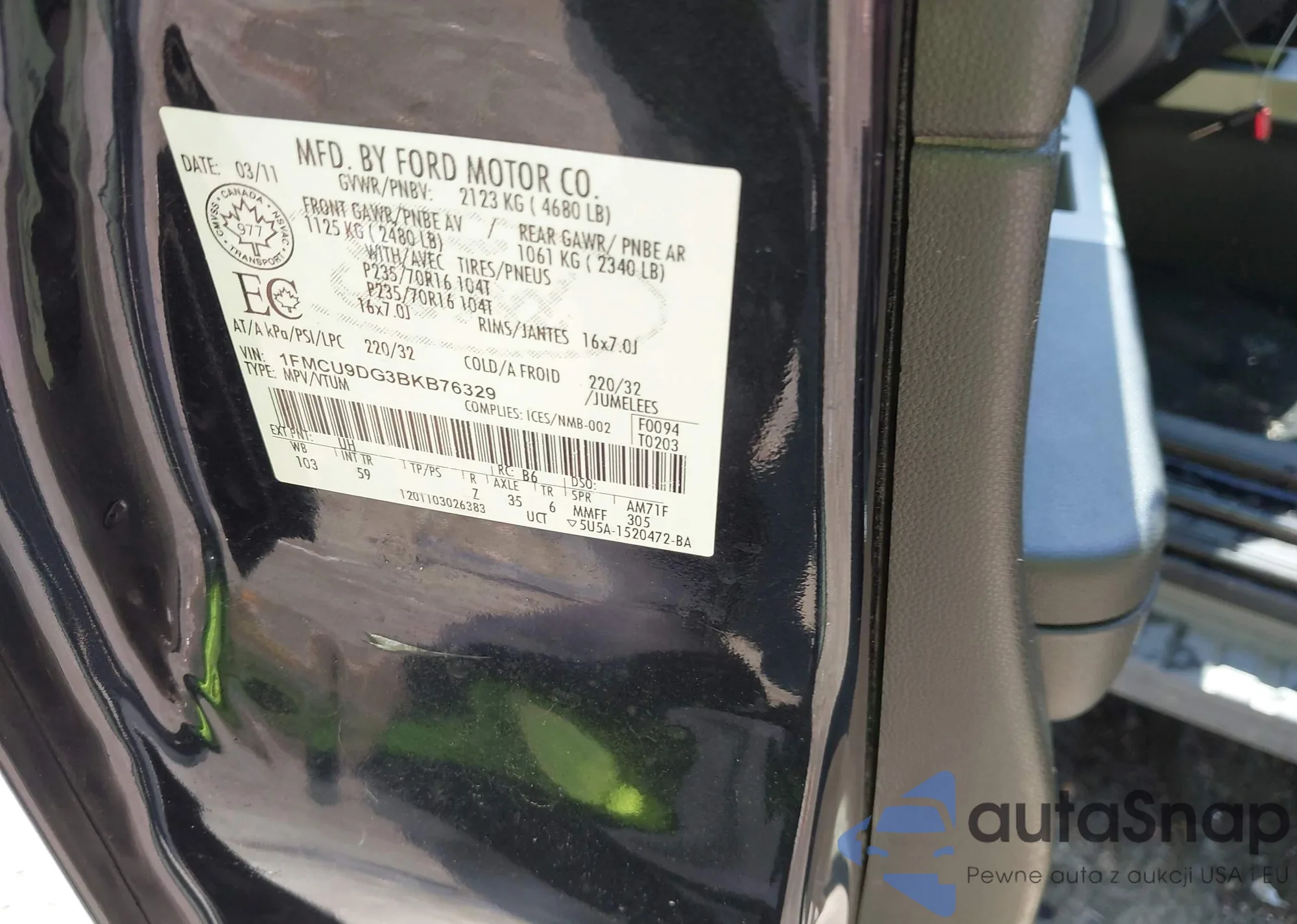 • VIN 1FMCU9DG3BKB76329