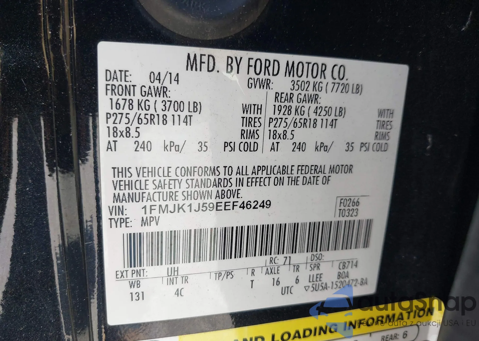 LOT: 42377758 VIN: 1FMJK1J59EEF46249