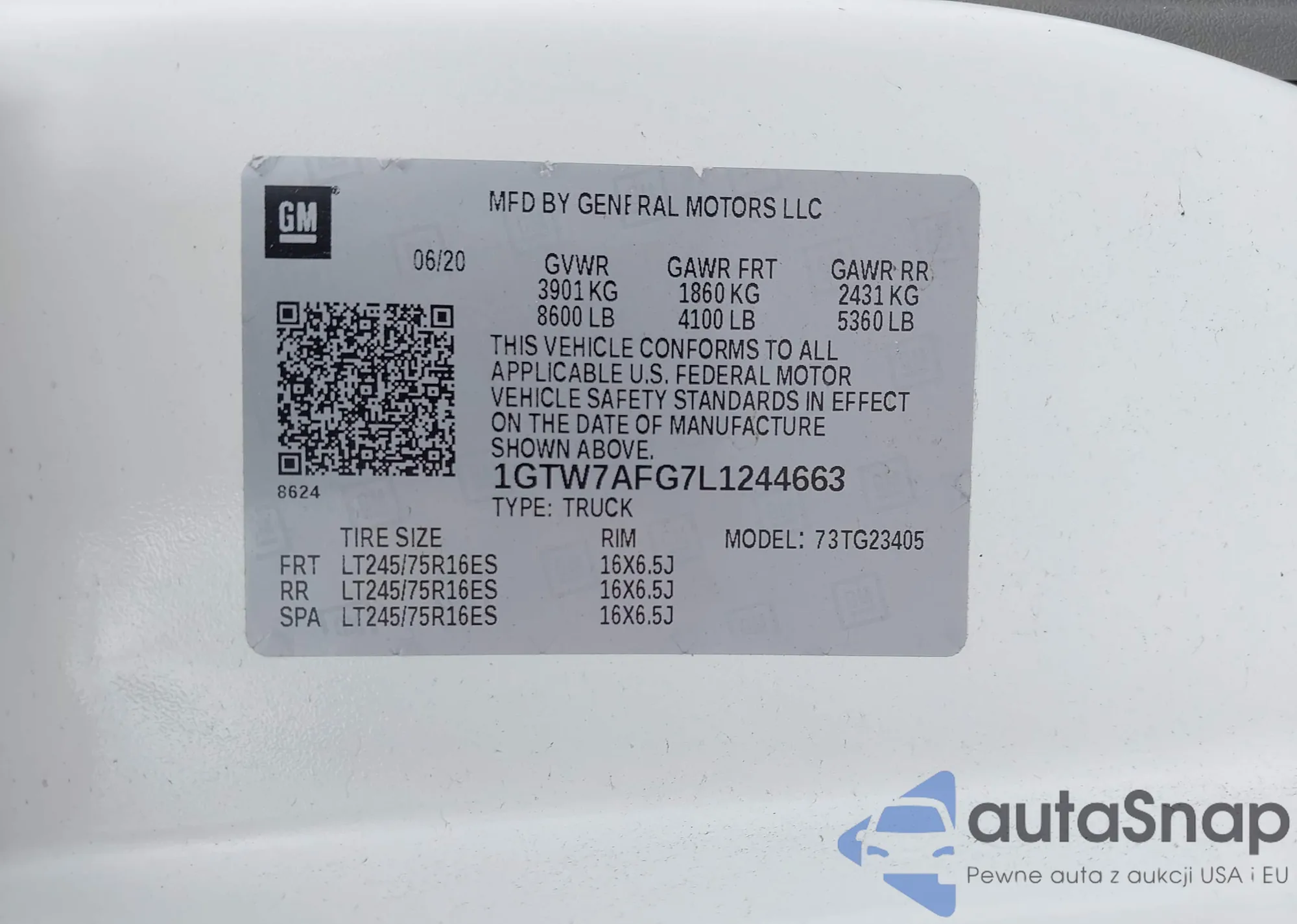 LOT: 42155086 VIN: 1FMSK7DH9LGB46593