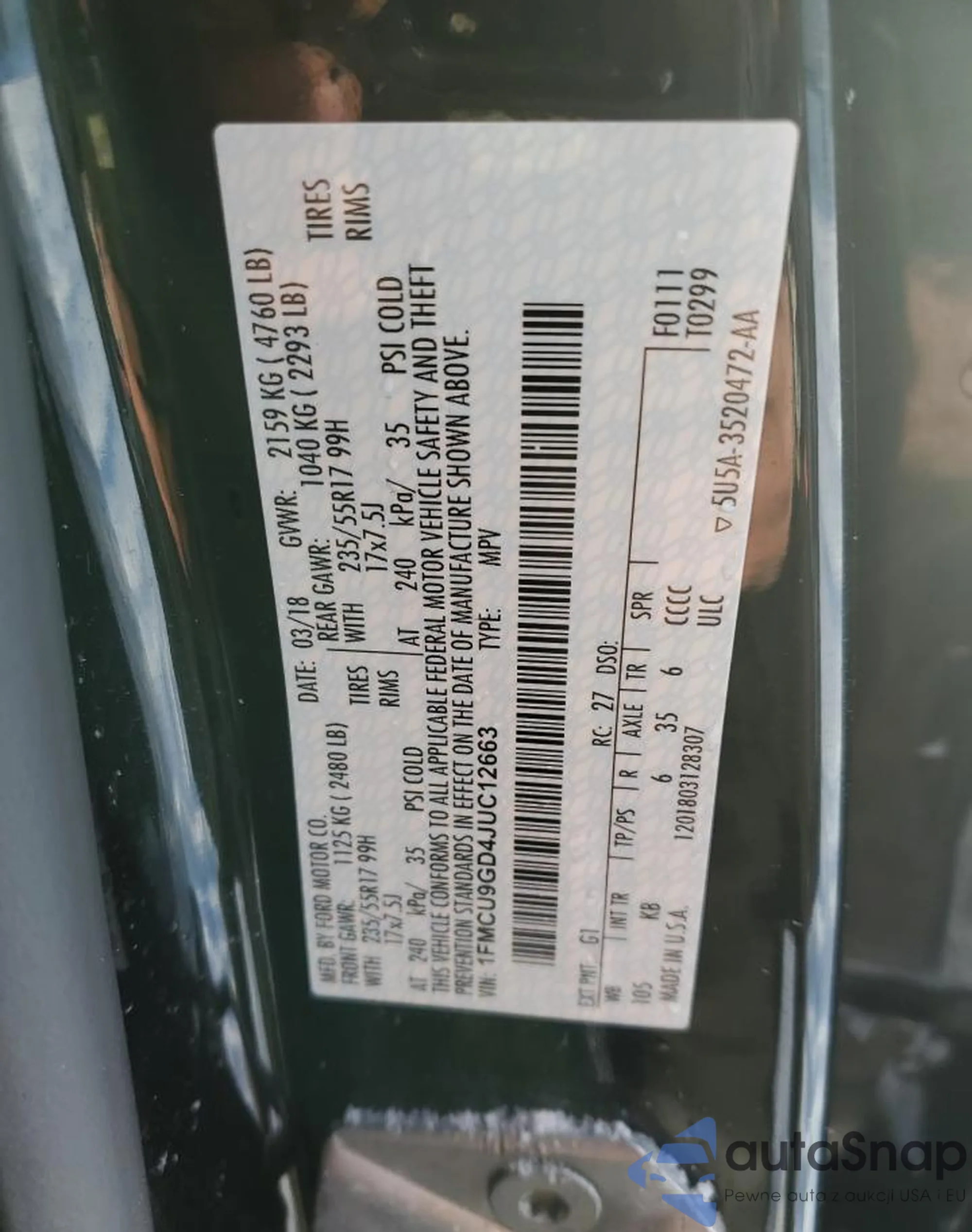 • VIN 1FMCU9GD4JUC12663