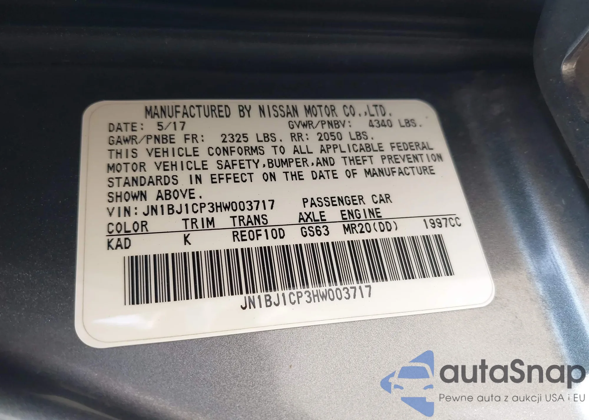 LOT: 42318482 VIN: JN1BJ1CP3HW003717