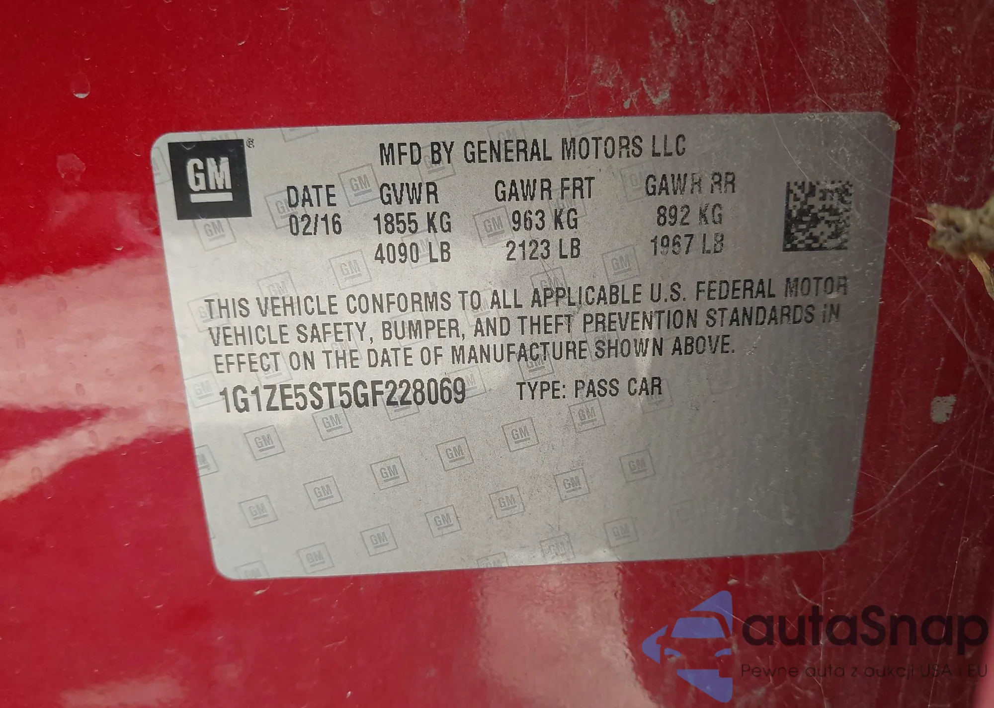 • VIN 1G1ZE5ST5GF228069