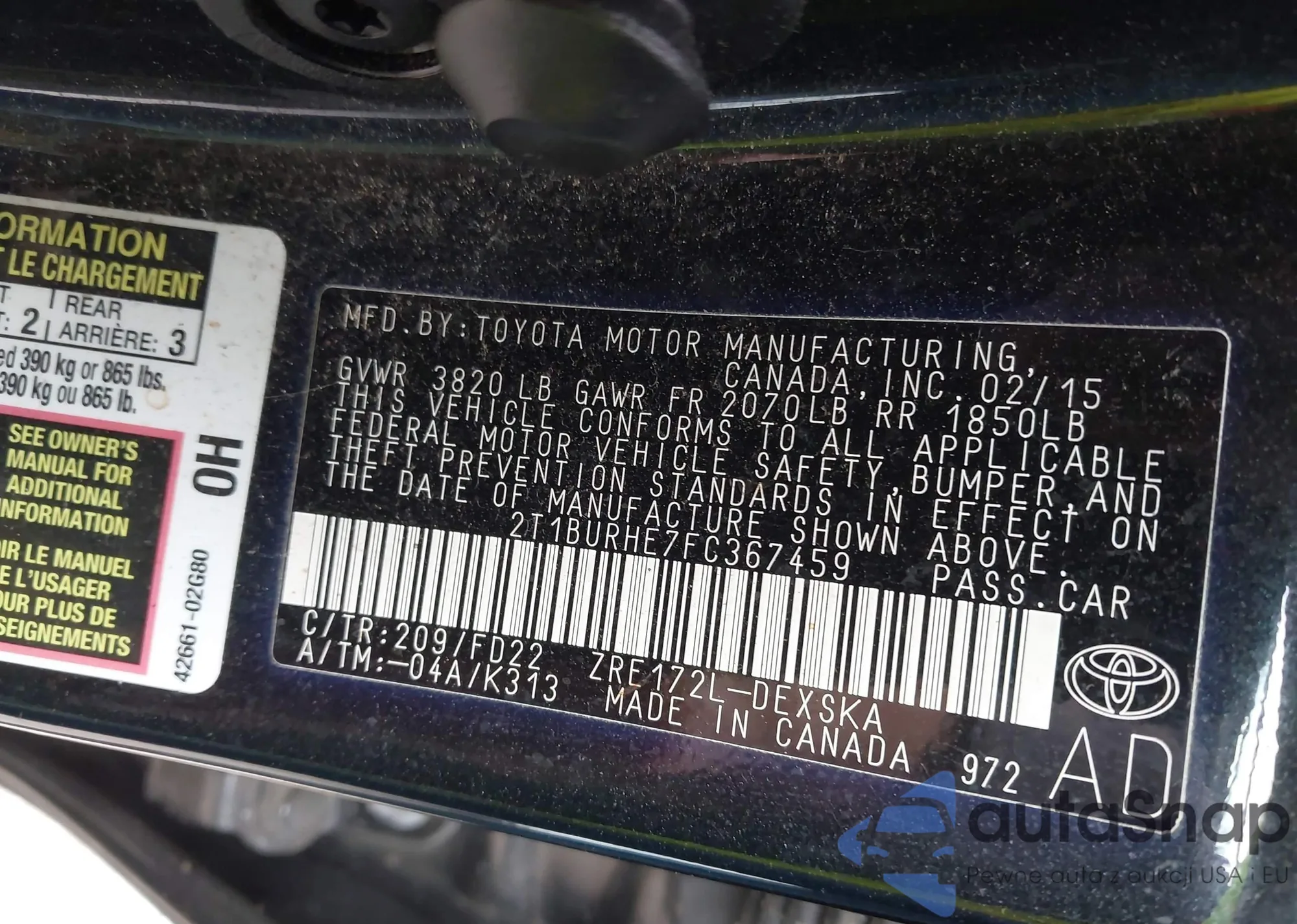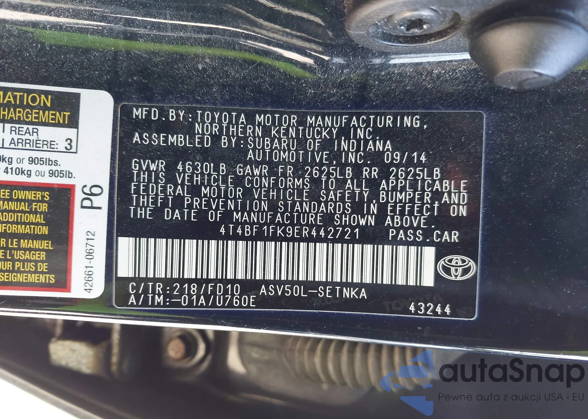 • VIN 4T4BF1FK9ER442721