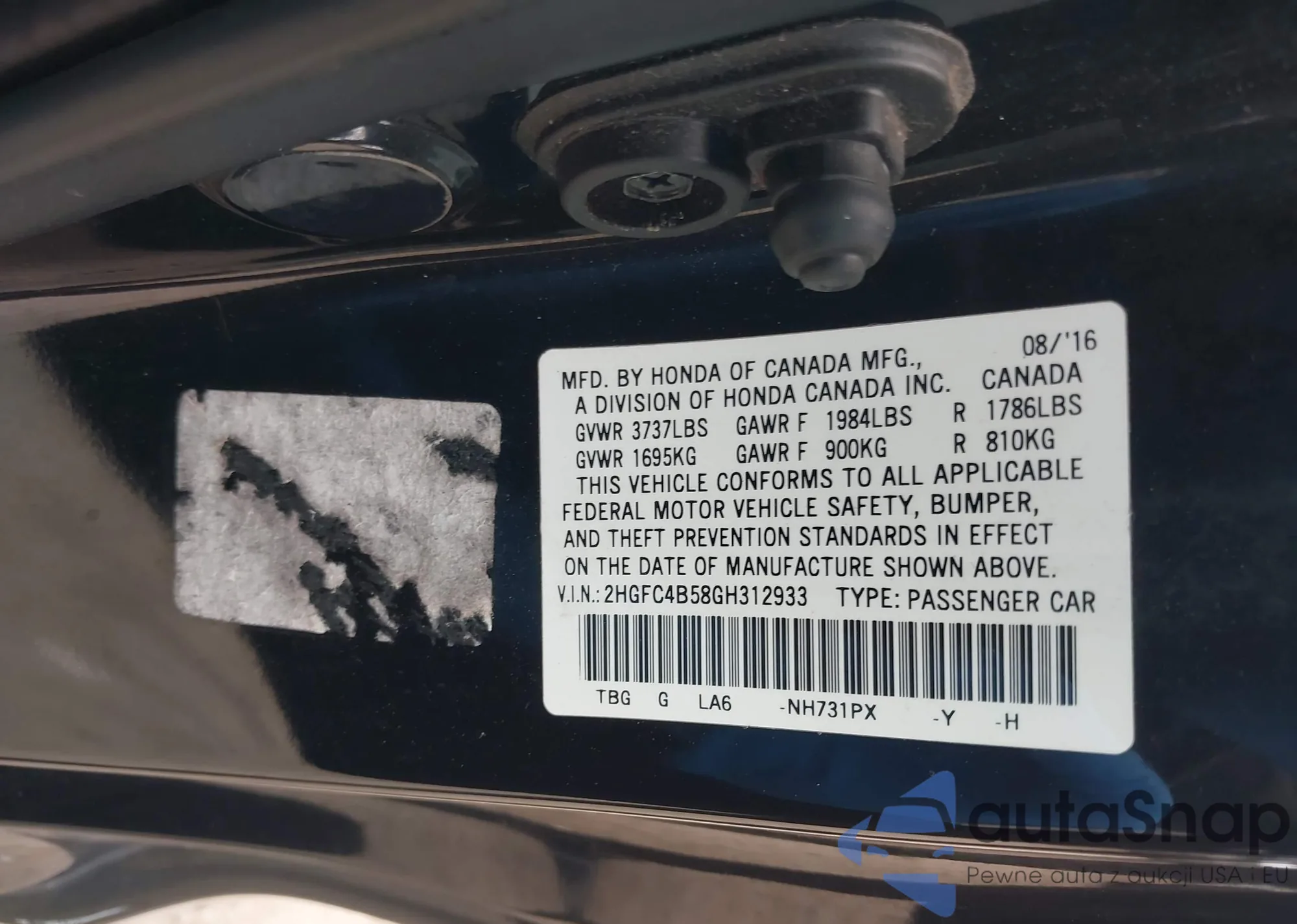 • VIN 2HGFC4B58GH312933