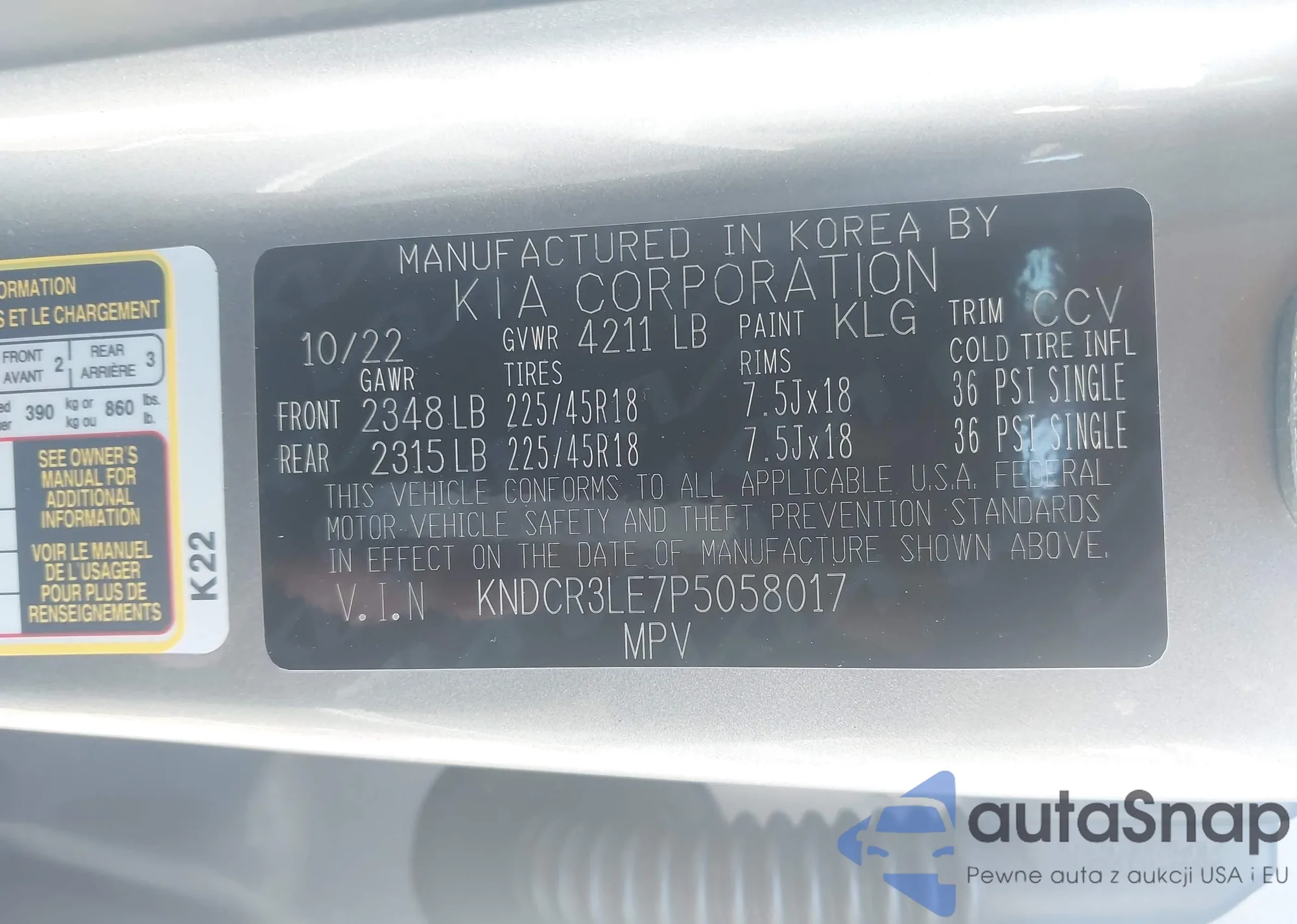 • VIN KNDCR3LE7P5058017