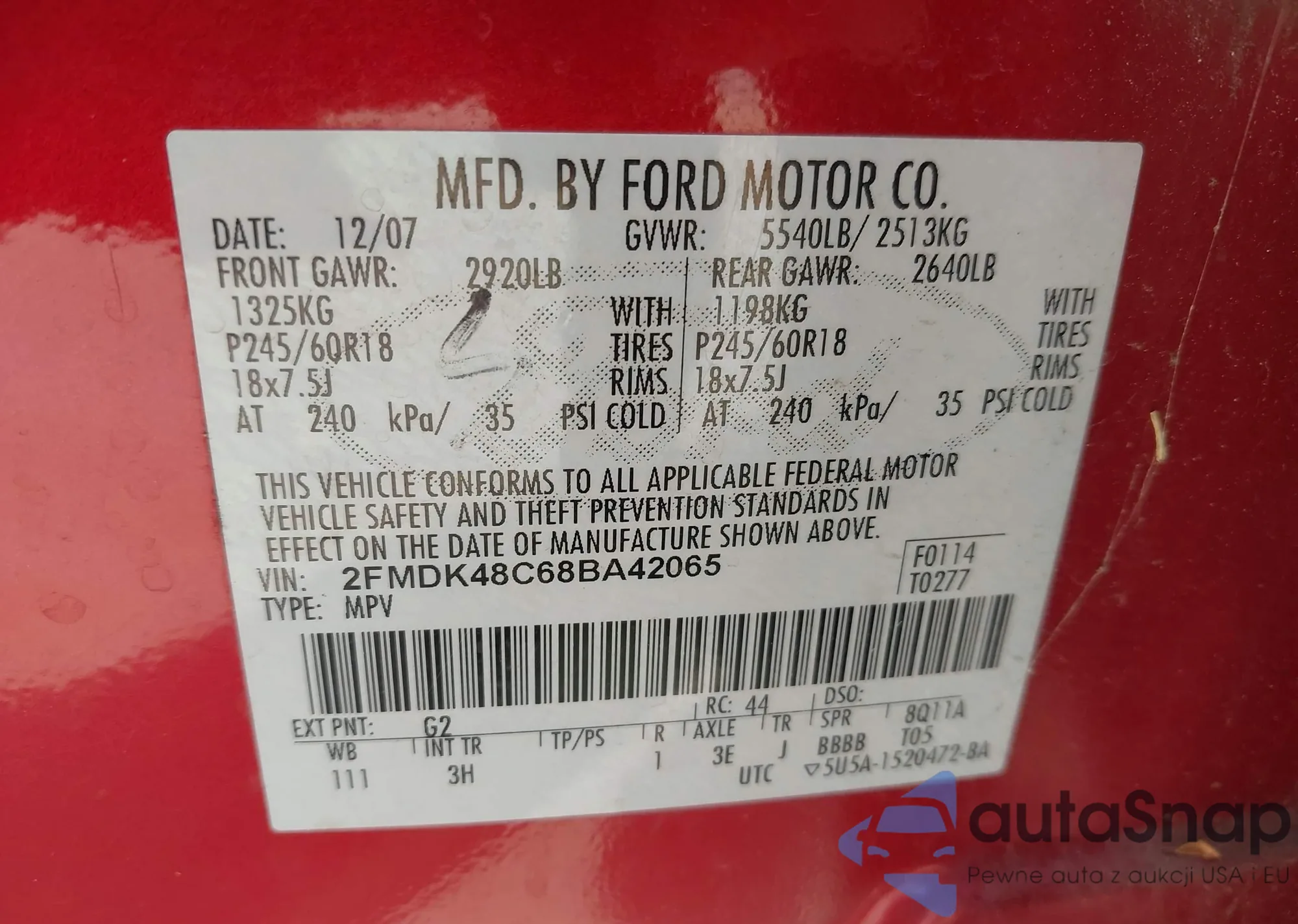 LOT: 42520993 VIN: 2FMDK48C68BA42065