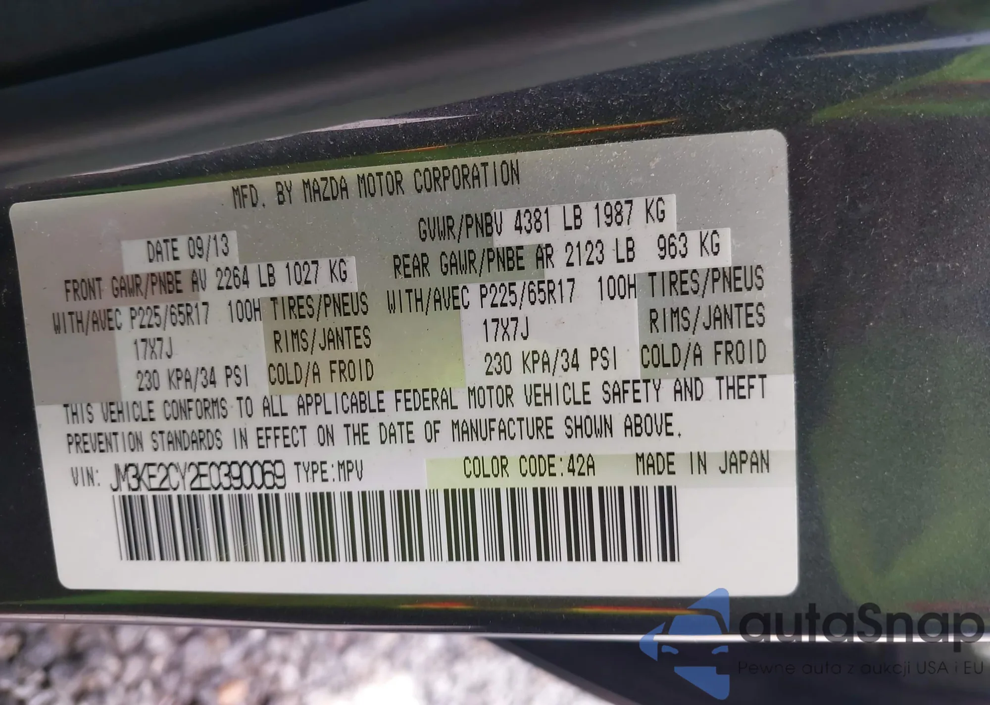 LOT: 42160764 VIN: JM3KE2CY2E0390069