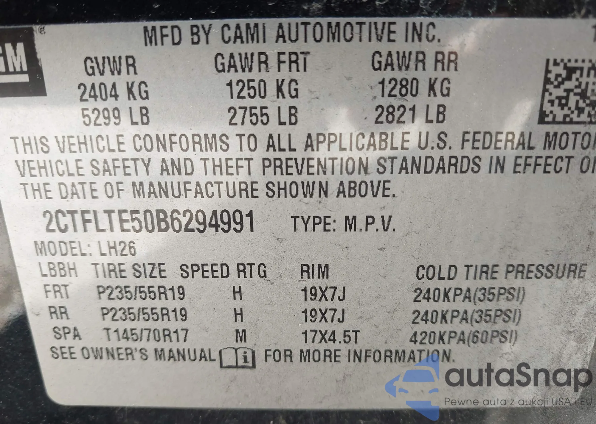 • VIN 2CTFLTE50B6294991