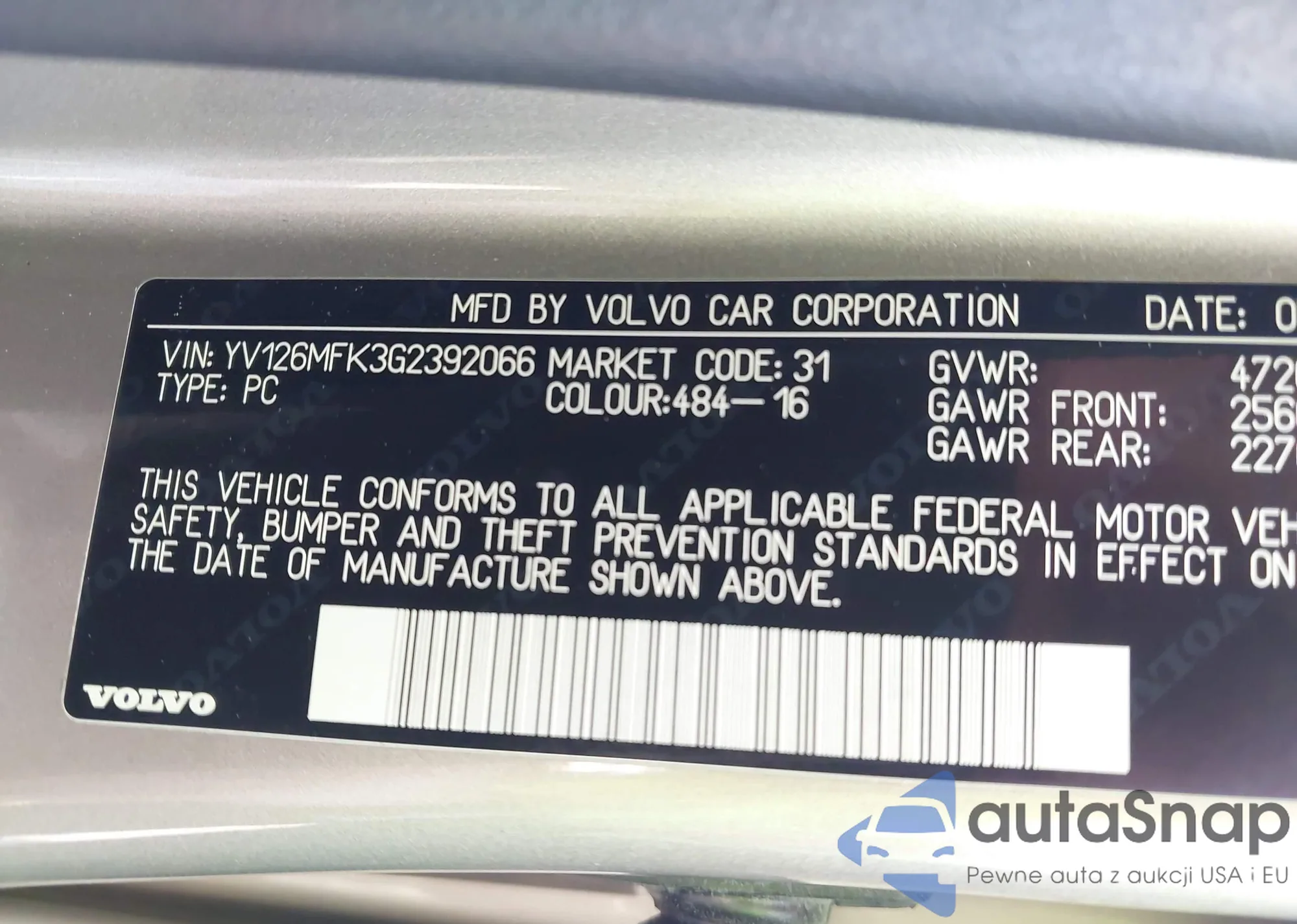 LOT: 42223863 VIN: 1VWBN7A39DC022849
