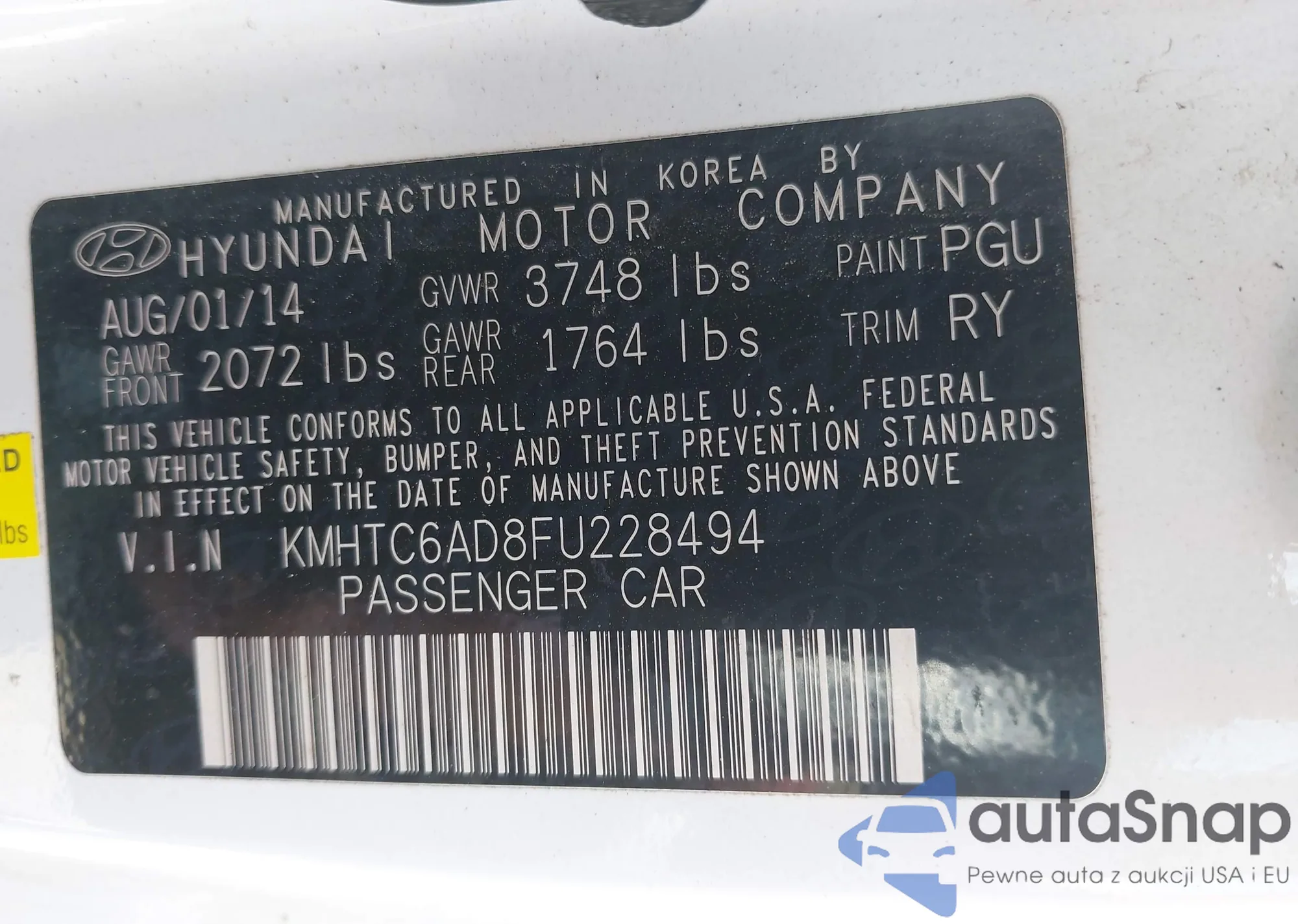 • VIN 5XYKUDA26BG059278