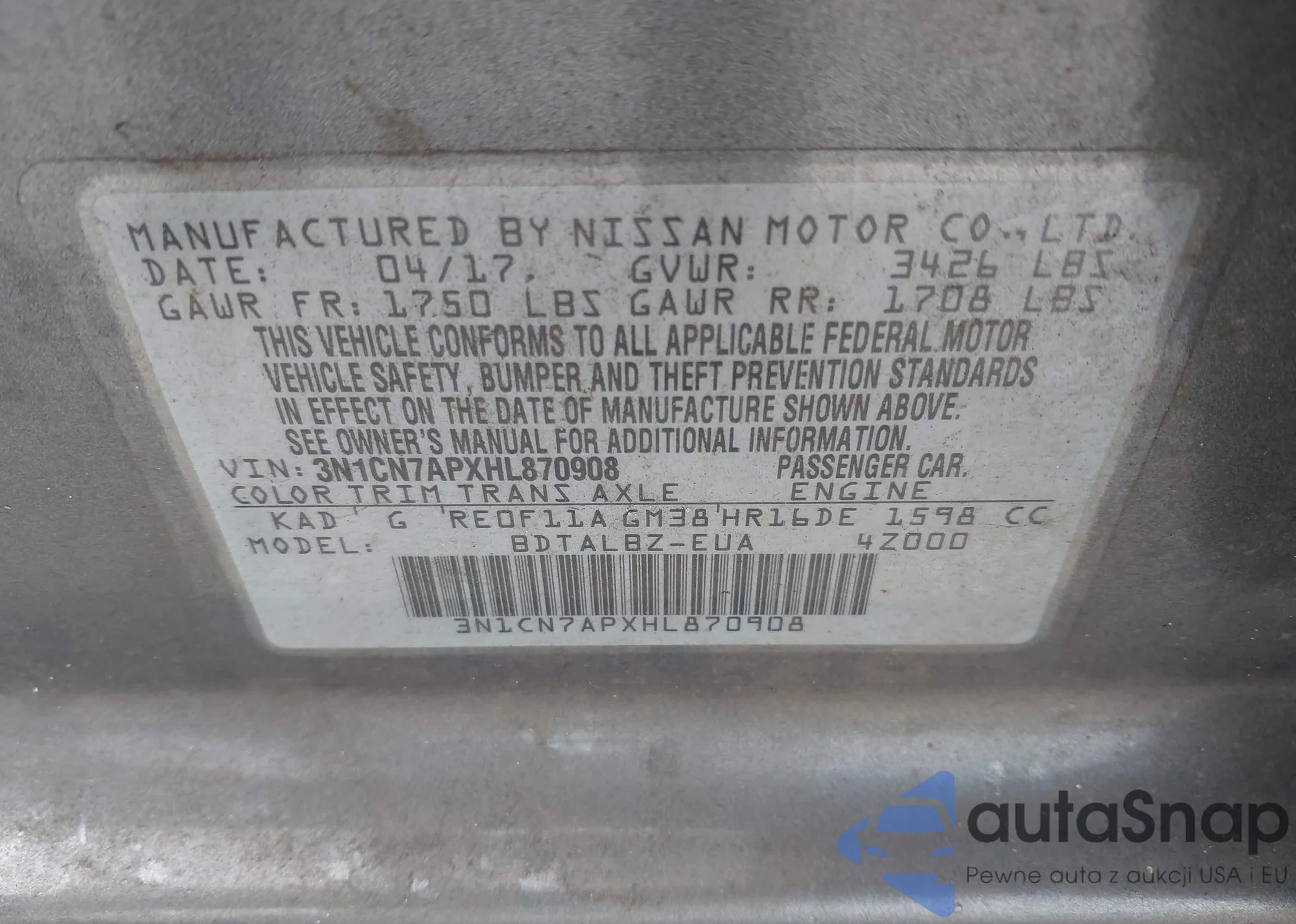 • VIN 3N1CN7APXHL870908