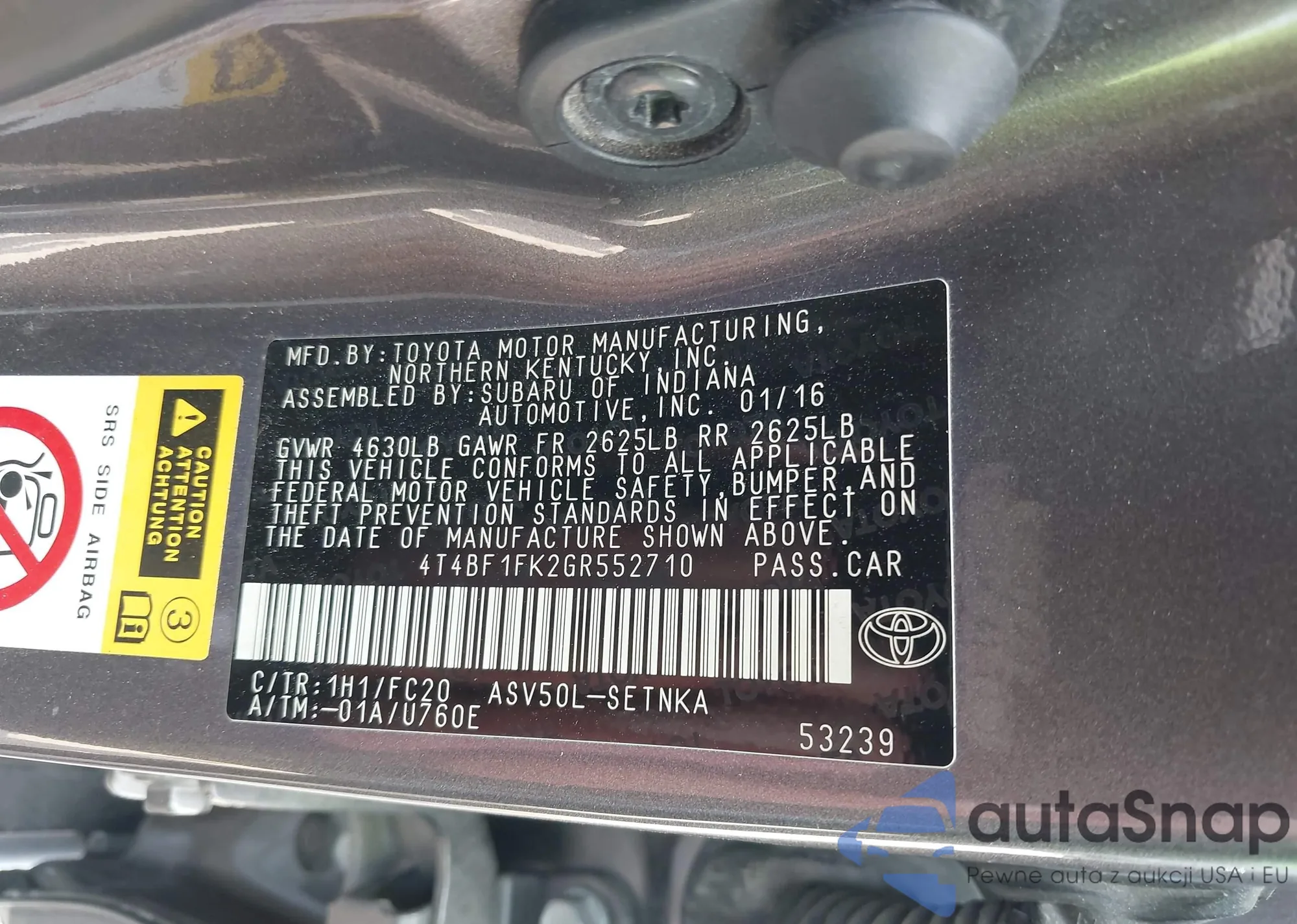 • VIN 4T4BF1FK2GR552710