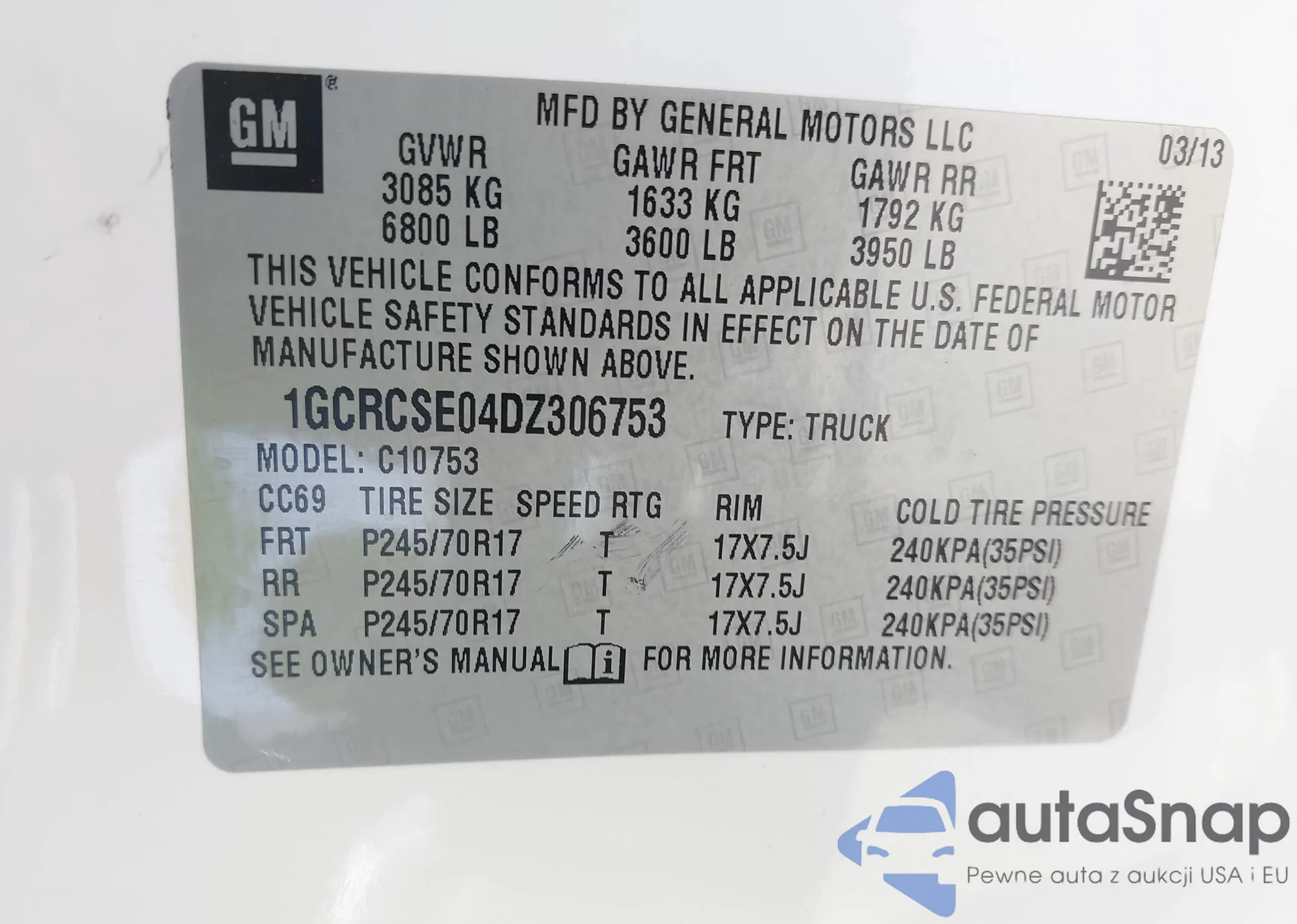 • VIN 1GCRCSE04DZ306753