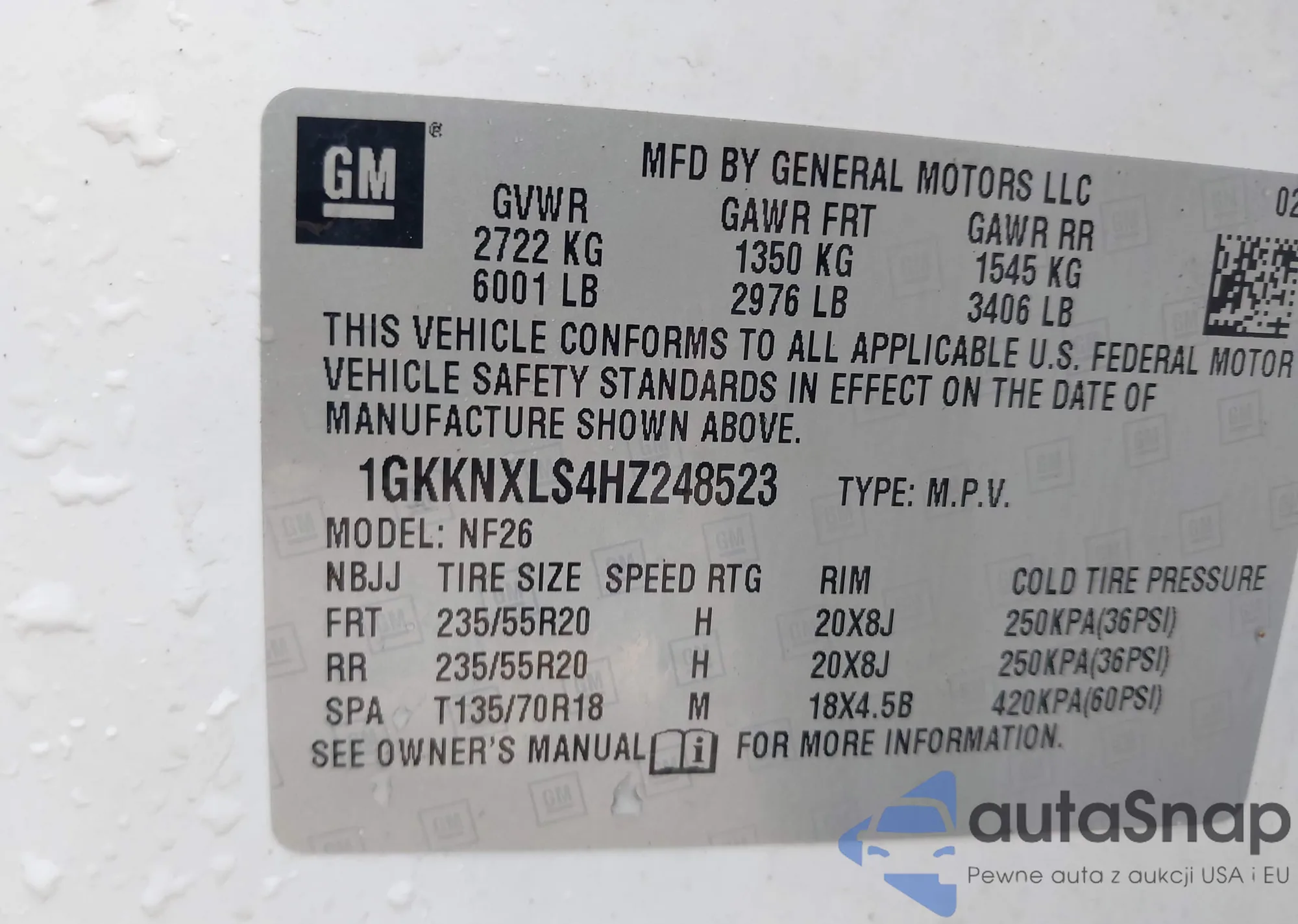 LOT: 41382209 VIN: 1GKKNXLS4HZ248523