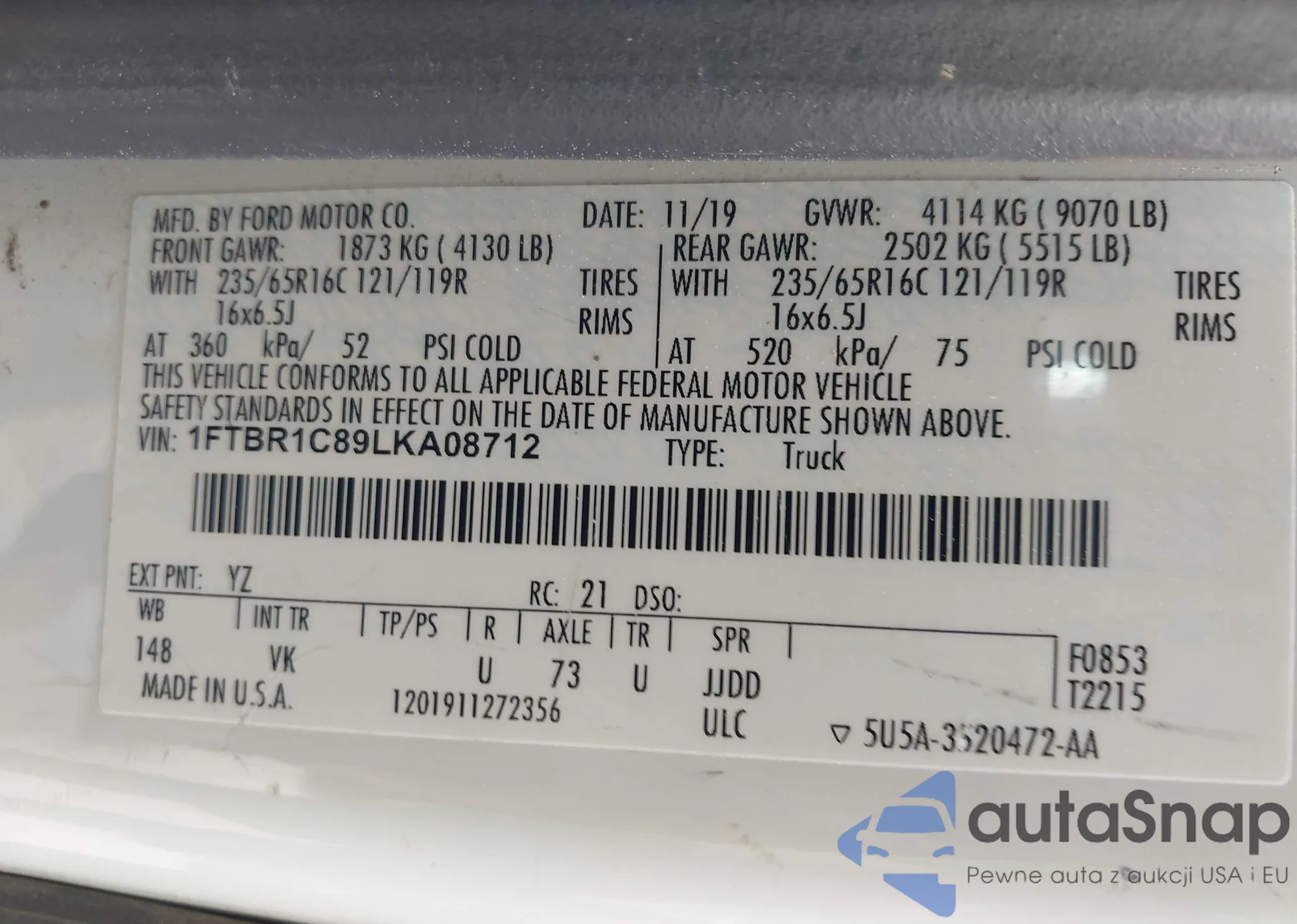LOT: 41211413 VIN: 1FTFW1E46LFB29226