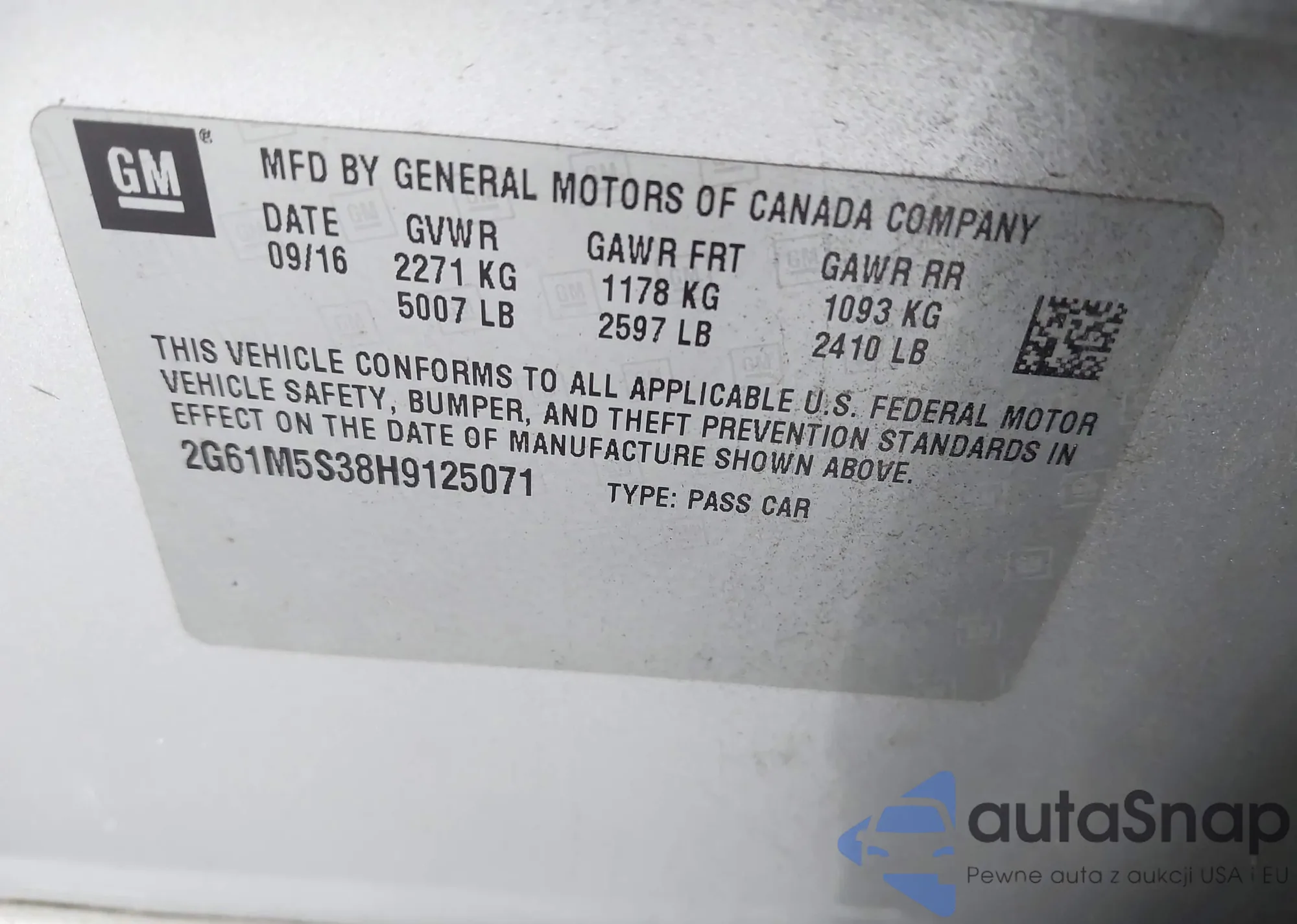 • VIN 2G61M5S38H9125071