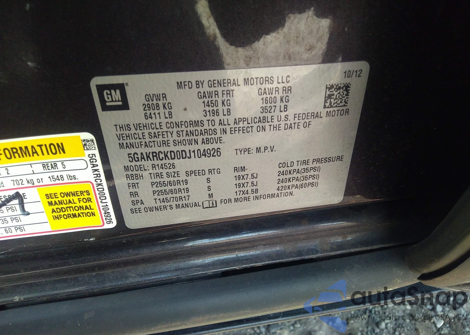 • VIN 5GAKRCKD0DJ104926
