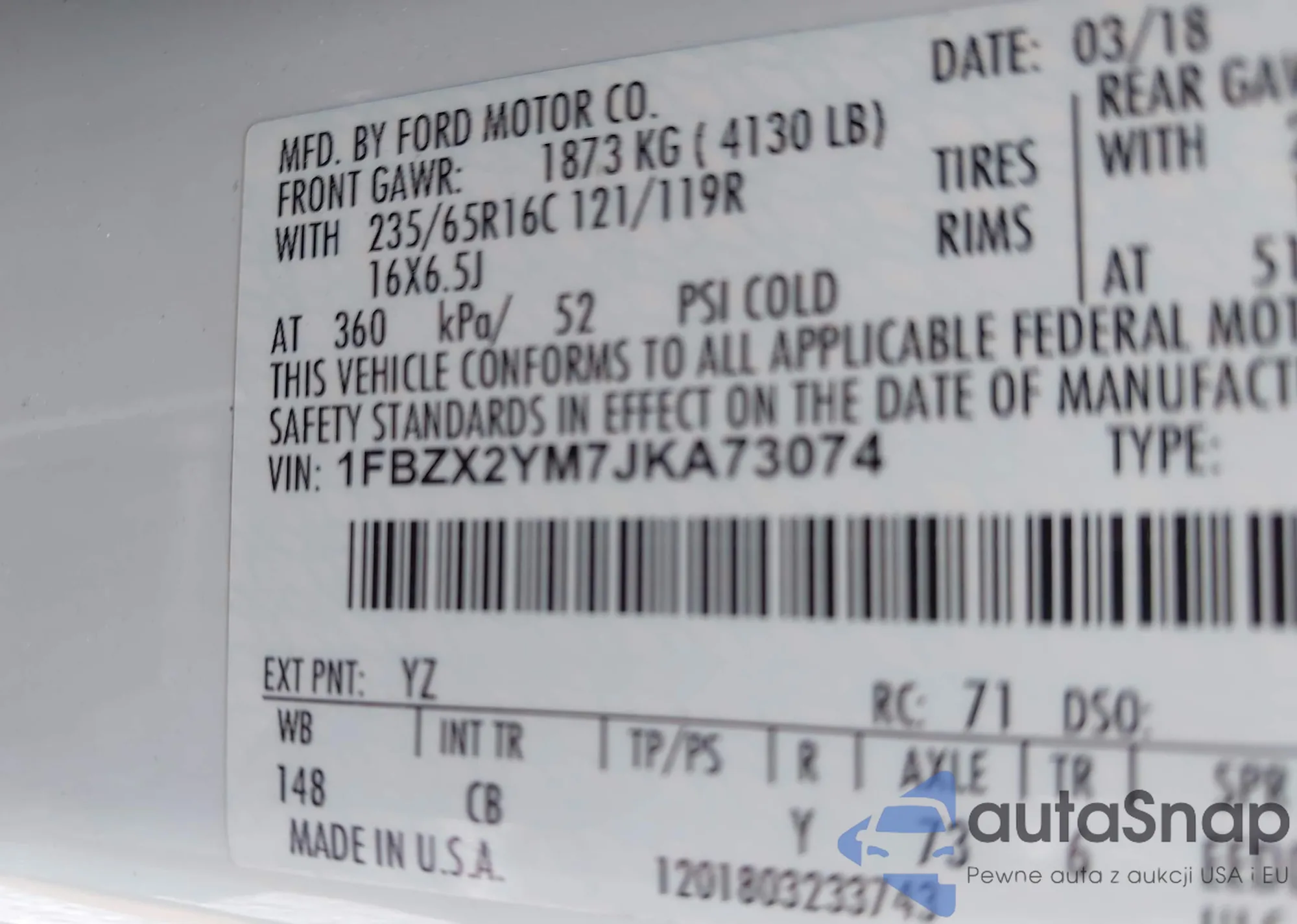 • VIN 1FBZX2YM7JKA73074