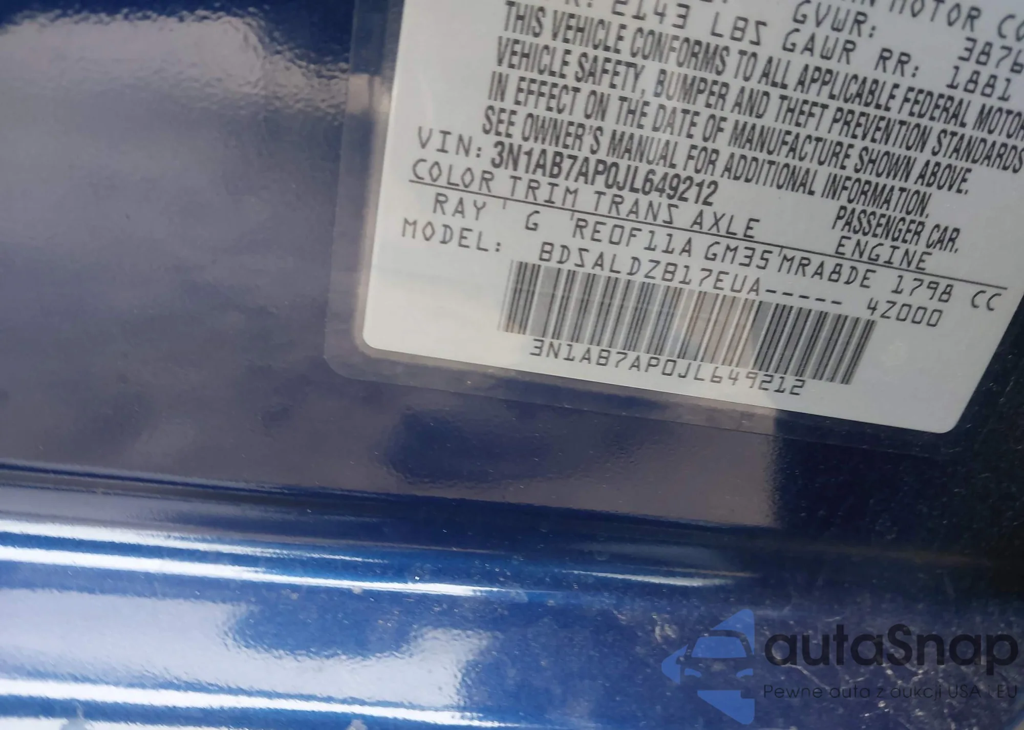 • VIN 3N1AB7AP0JL649212