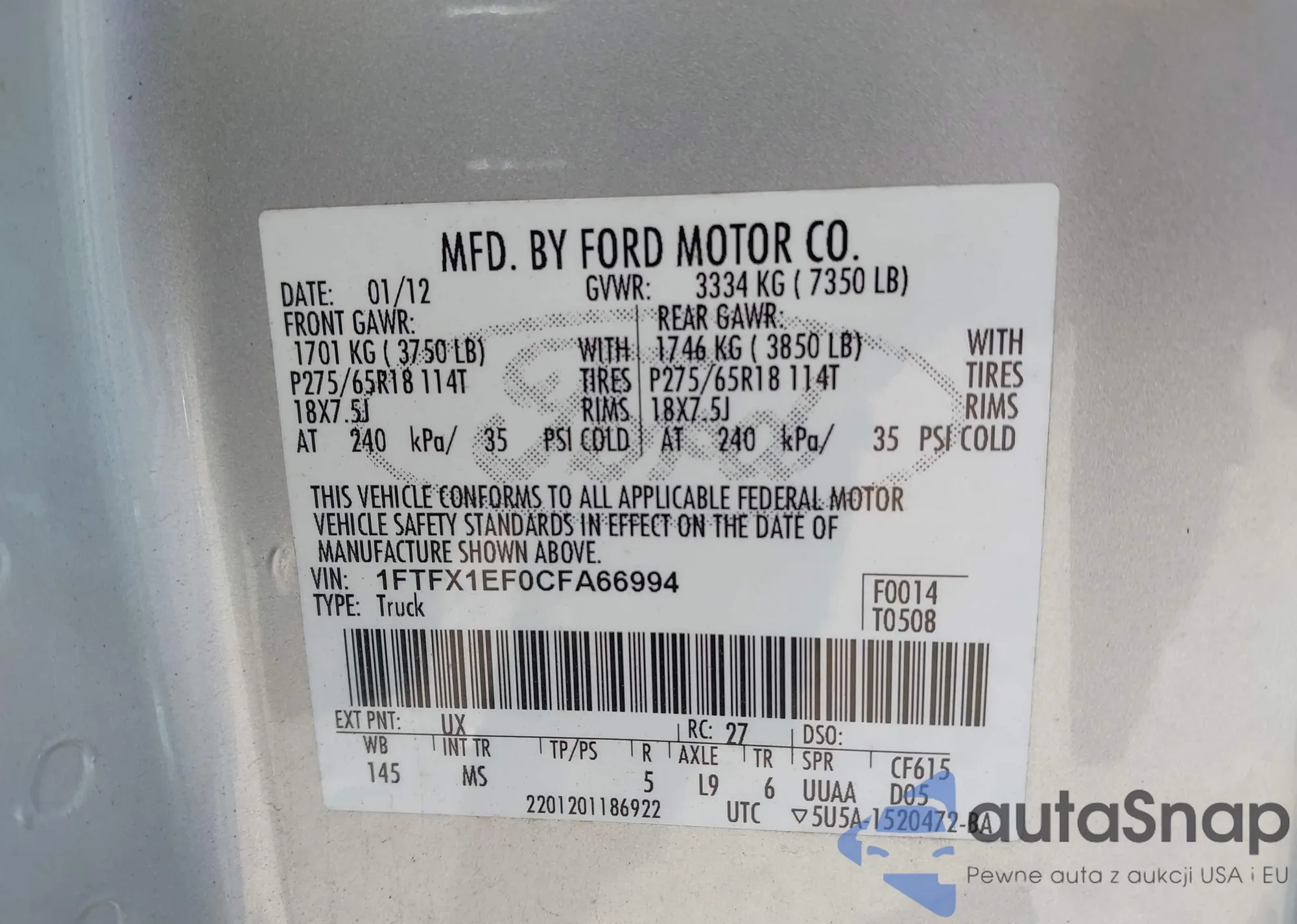 • VIN 1FTFX1EF0CFA66994
