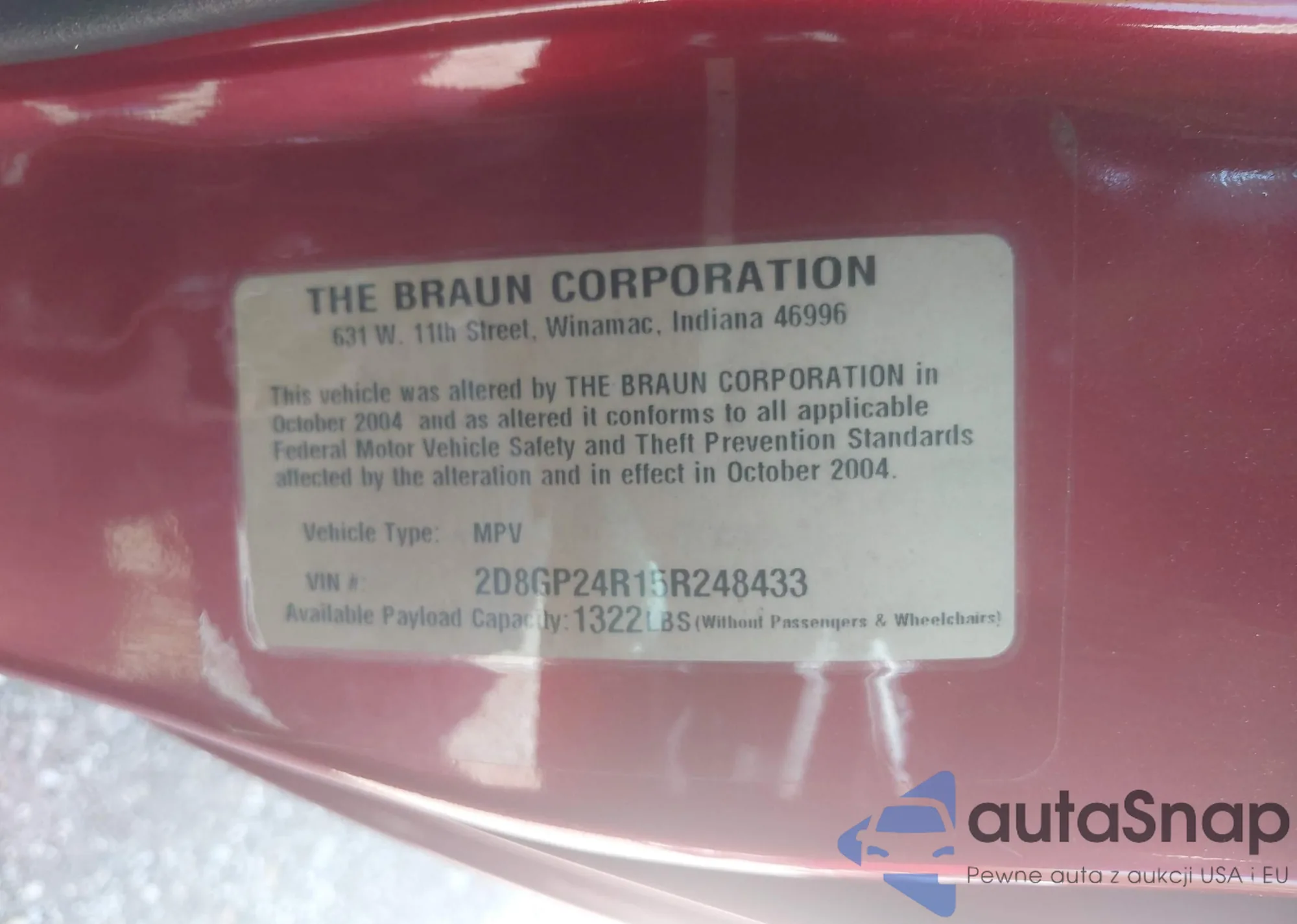 • VIN 2D8GP24R15R248433