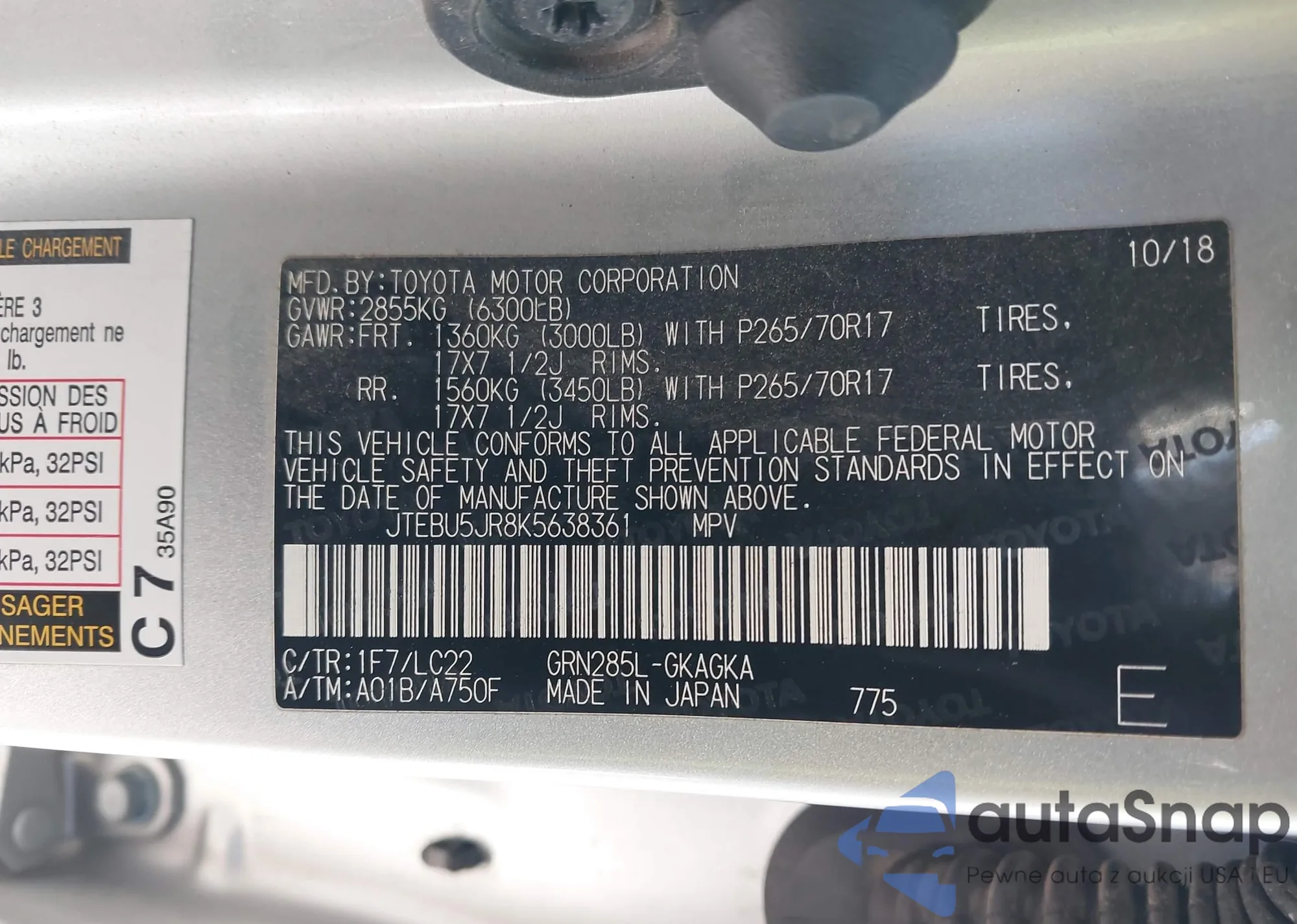 LOT: 41395110 VIN: JTEBU5JR8K5638361